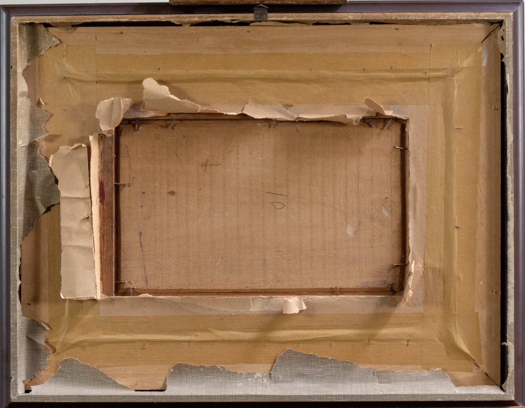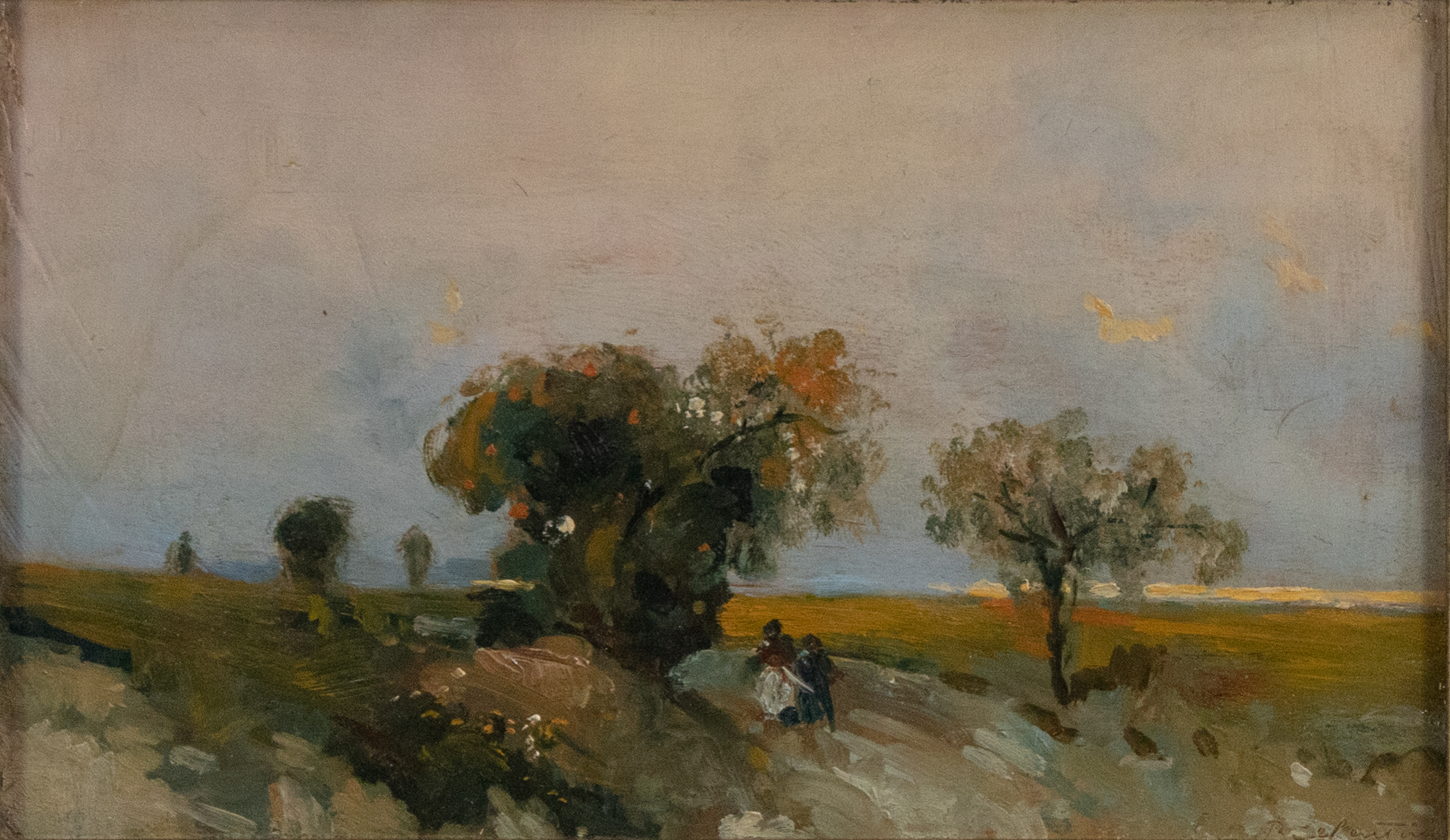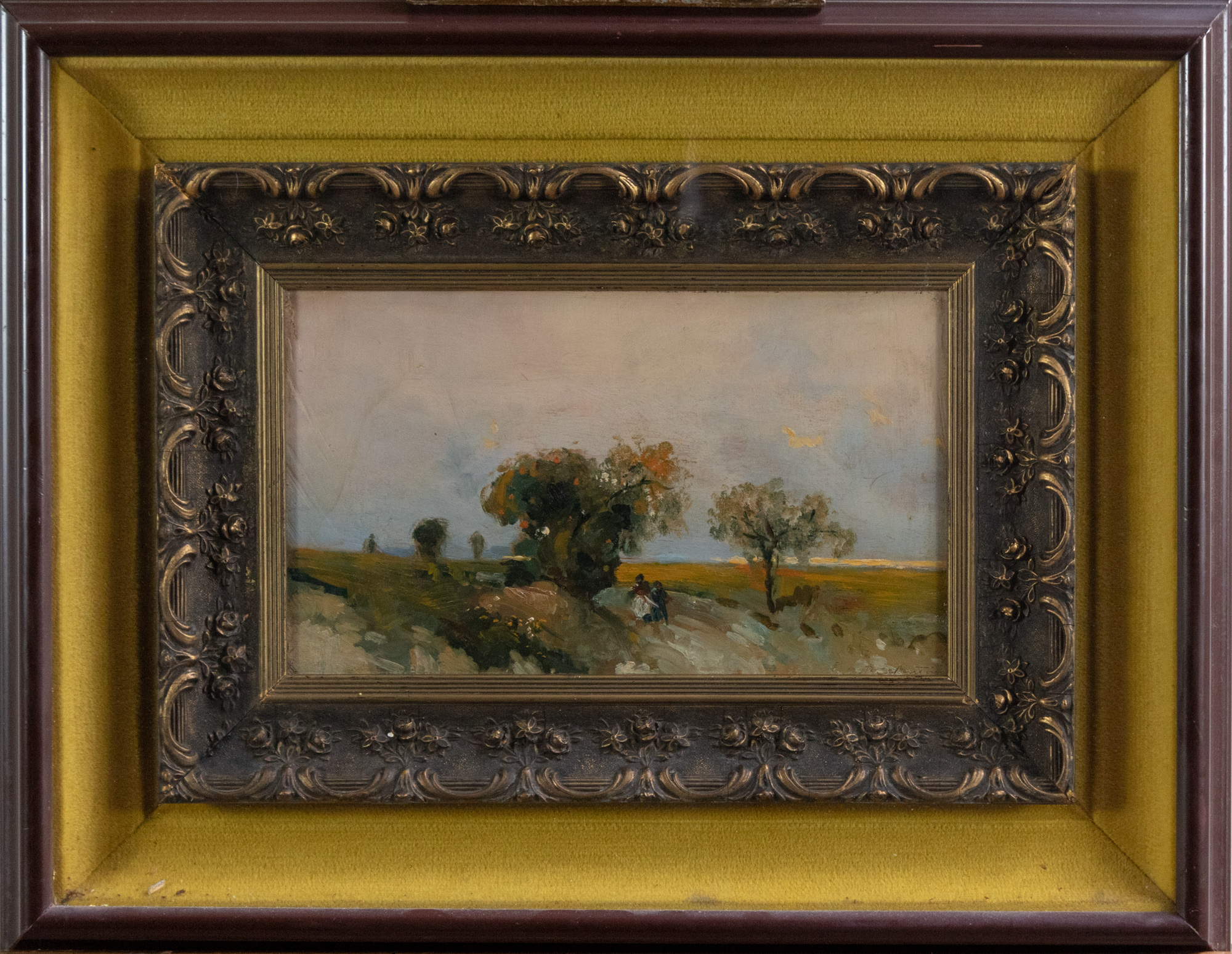 Firma indecifrata, Il sentiero che porta a casa, olio su tavoletta, 18x31 cm