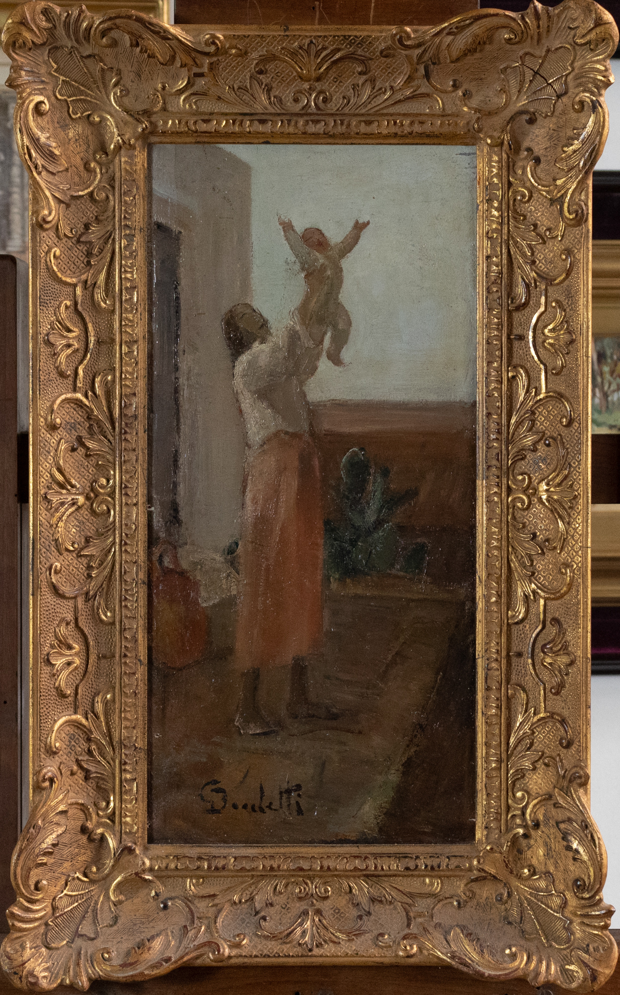 Gaetano Bocchetti ( Napoli 1888 - 1990 ), Inno alla vita, olio su tavola,46x22 cm