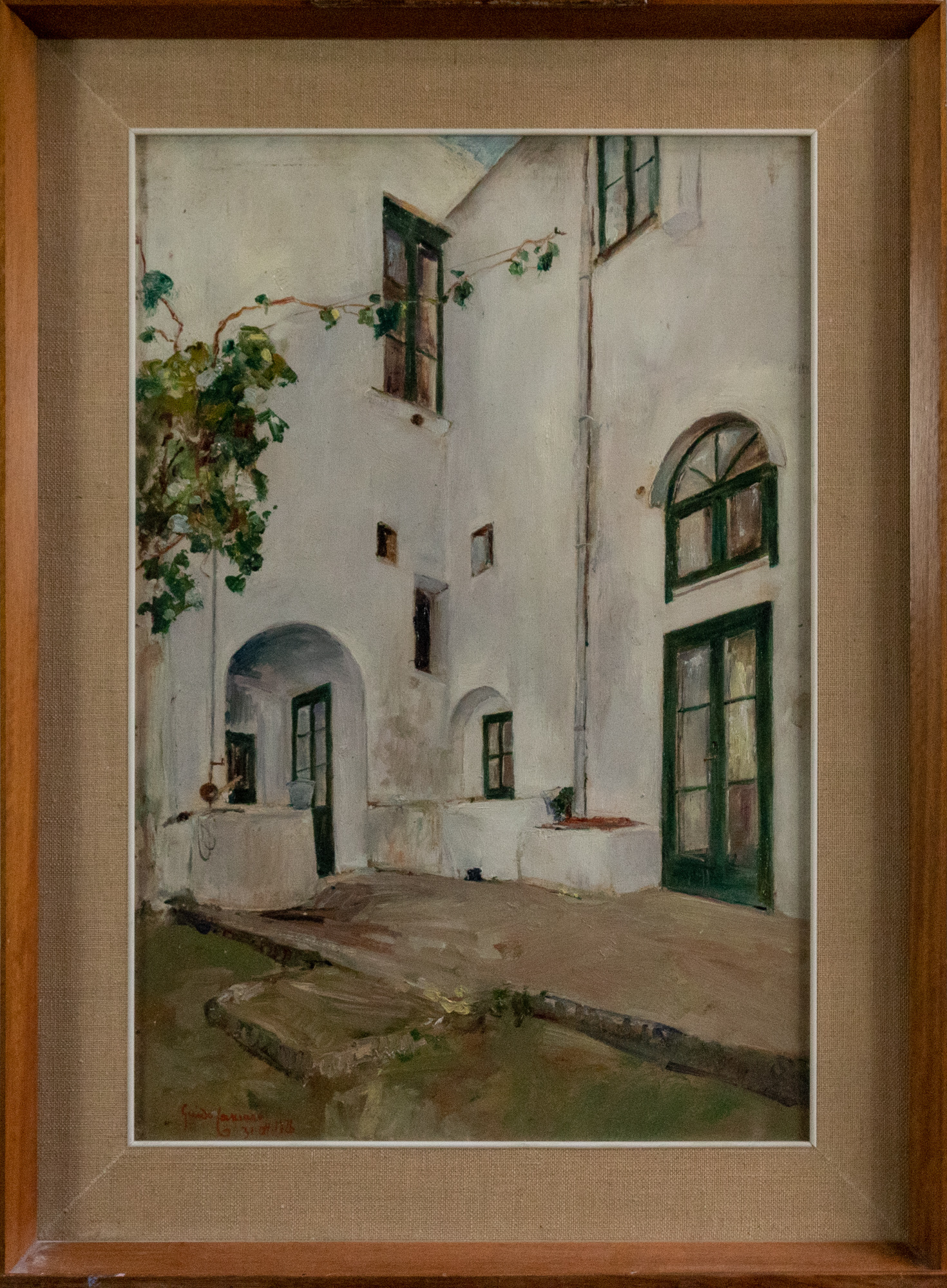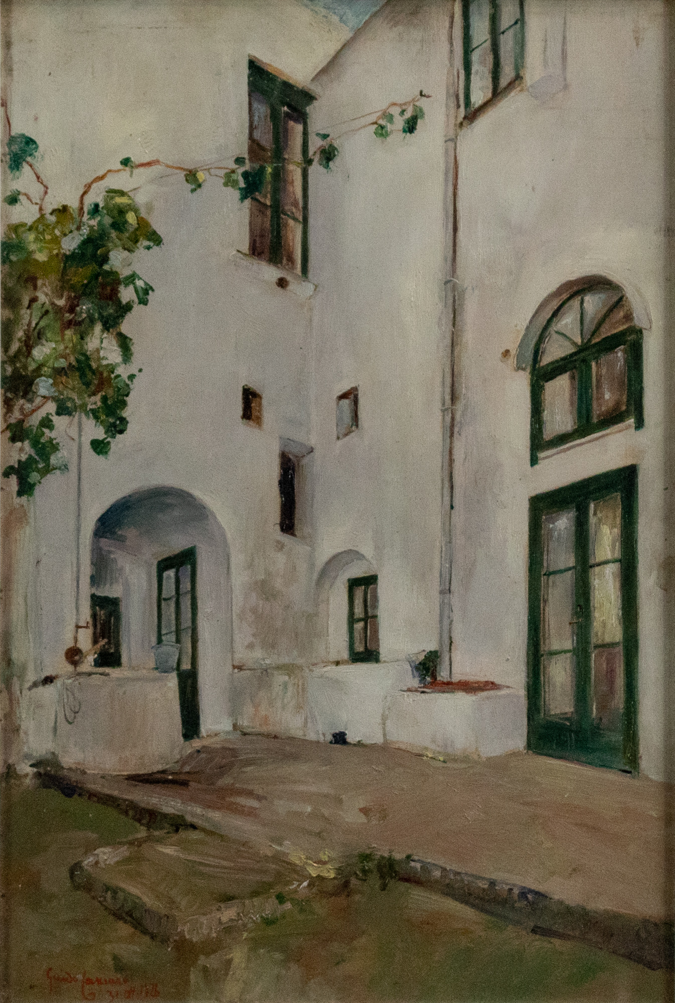 Guido Casciaro (Napoli 1900 - 1963), Cortile, olio su tela, 60x42