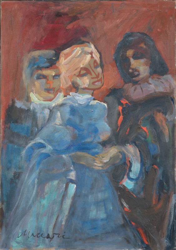 Mino Maccari Siena 1898 - Roma 1989 Tre figure Olio su cartone, cm. 50x35 Firma in basso a sinistra: Maccari. Foto autenticata dall'artista.