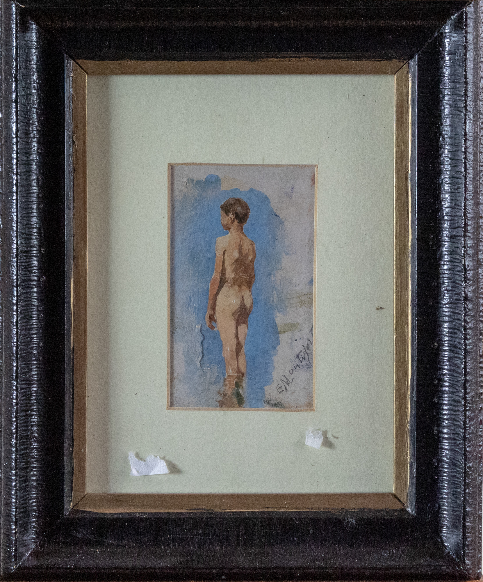 Edoardo Monteforte (Polla, SA 1849 - Napoli 1933), Nudo di fanciullo , olio su carta, 9x5,5cm