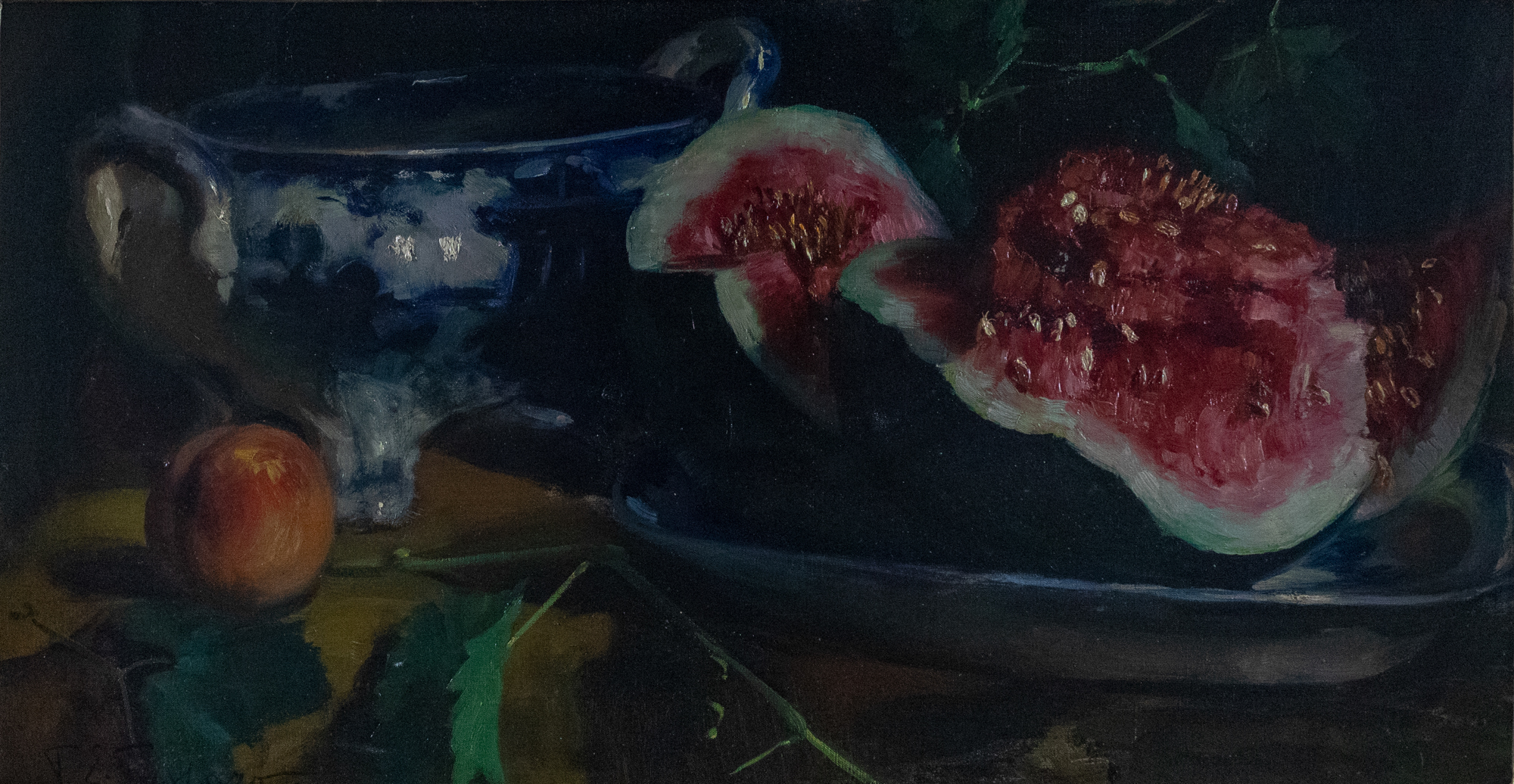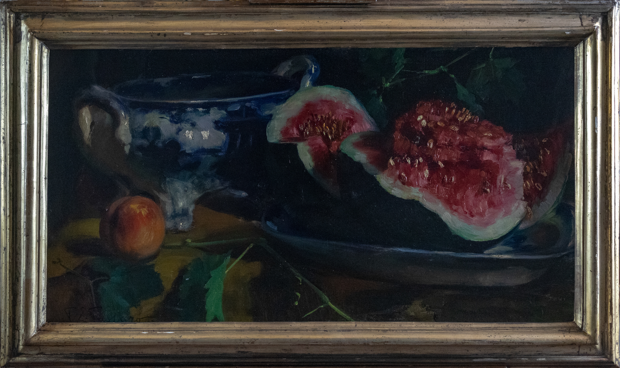 Paolo Emilio Passaro (Vallo della Lucania, SA 1878 - Napoli 1956), Natura morta, olio su tela, 43x81 cm