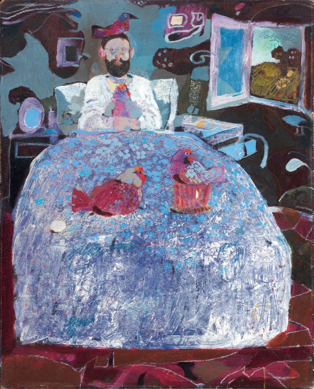 Antonio Possenti Lucca 1933 A letto in campagna Olio su tavola, cm. 50x39,7 Firma in alto a destra: Possenti; firma e titolo al verso: Possenti / A letto / in campagna.