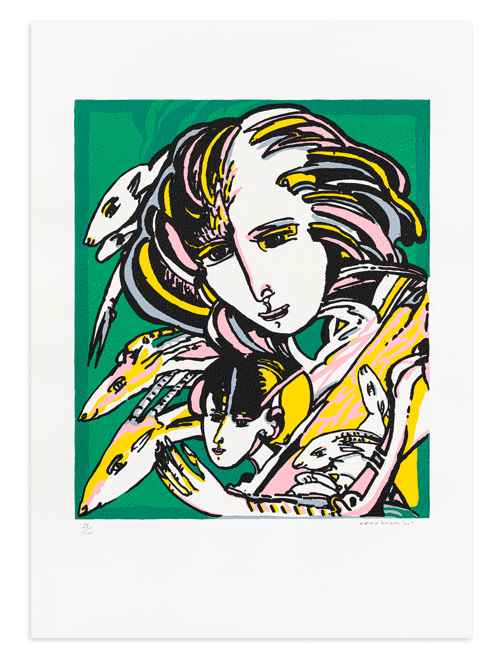 Firma e numerazione (Esemplare 27/100) a matita al fronte