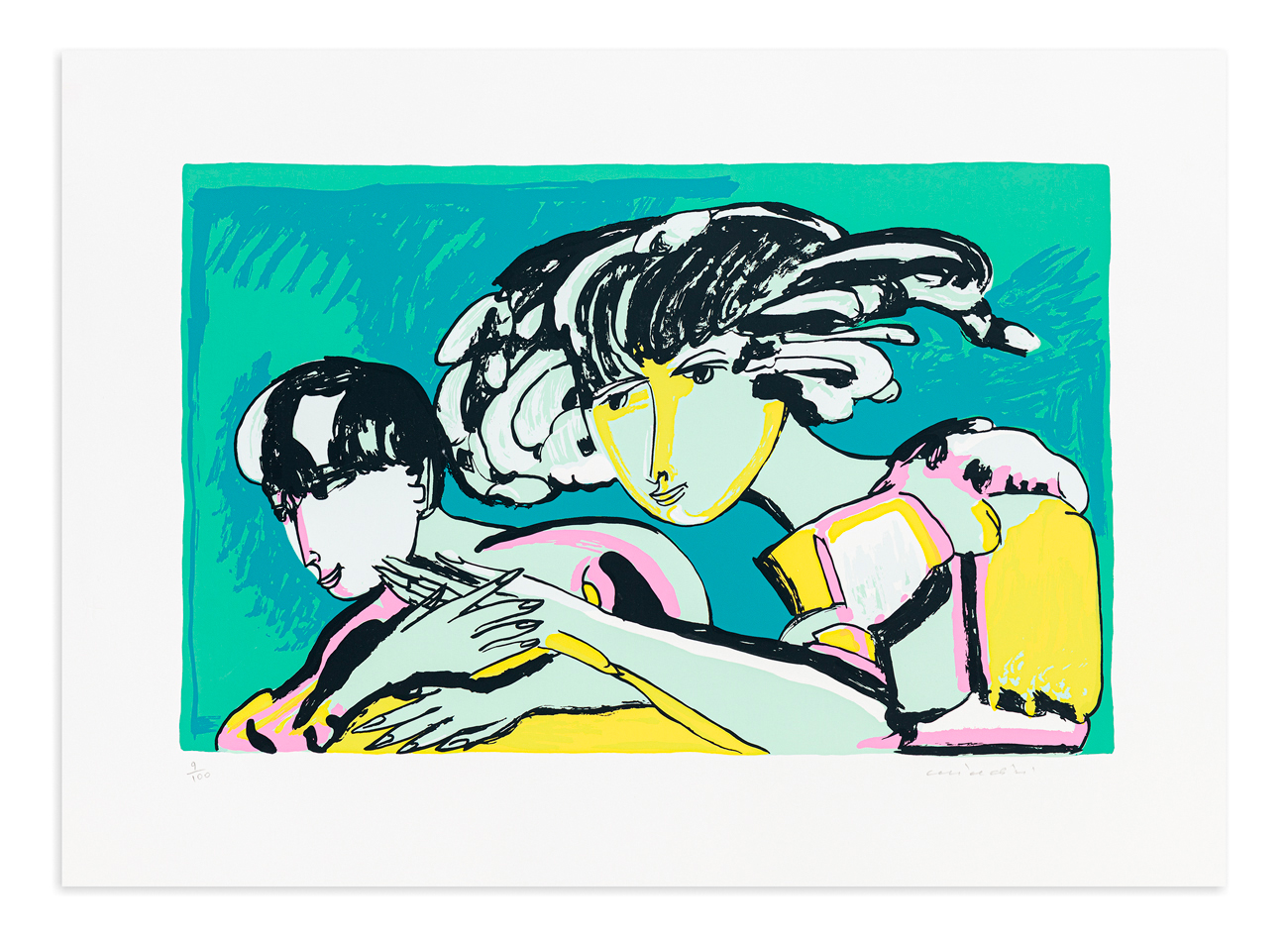 Firma e numerazione (Esemplare 9/100) a matita al fronte