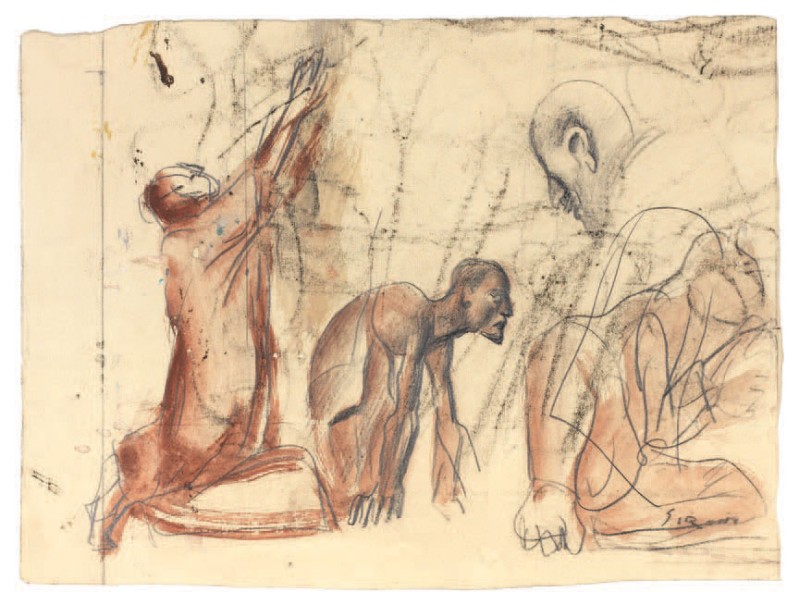 Mario Sironi Sassari 1885 - Milano 1961 Figure Acquerello, matita e carboncino su carta, cm. 28,5x37,8 Firma in basso a destra: Sironi.
