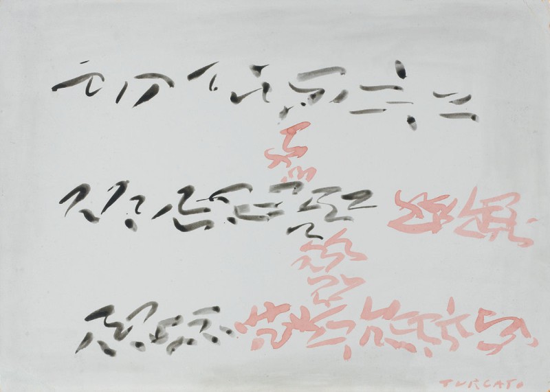 Giulio Turcato Mantova 1912 - Roma 1995 Composizione, 1960 ca. Tempera su caroncino, cm. 50x70 Firma in basso a destra: Turcato; al verso: n. d'archivio DME183718EP03JA. Certificato su foto Archivio Giulio Turcato, con n. DME183718EP03JA.