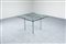 Tavolo con struttura in metallo cromato, piano in vetro.