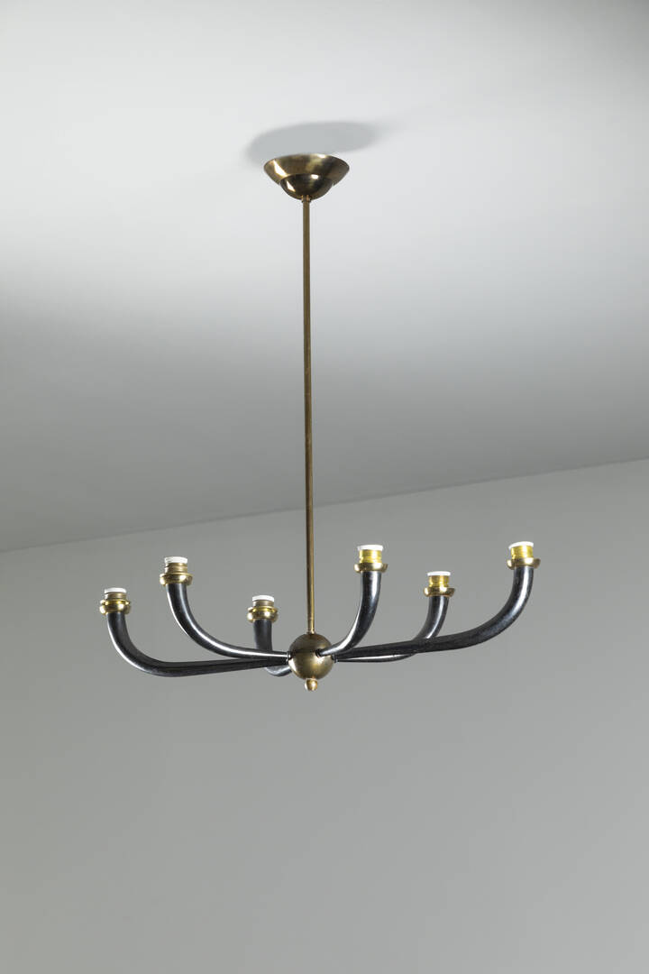 Lampadario in ottone e metallo verniciato.