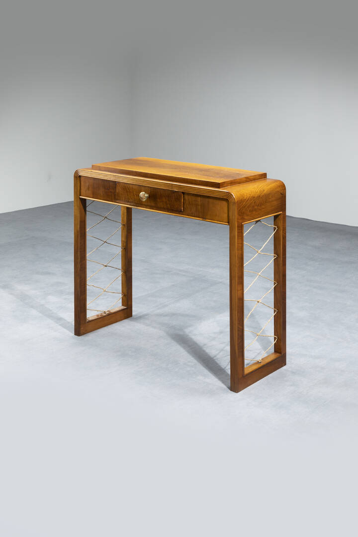 Console in legno di noce, fianchi con corda.