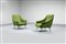 Coppia di poltrone con imbottitura rivestita in tessuto.