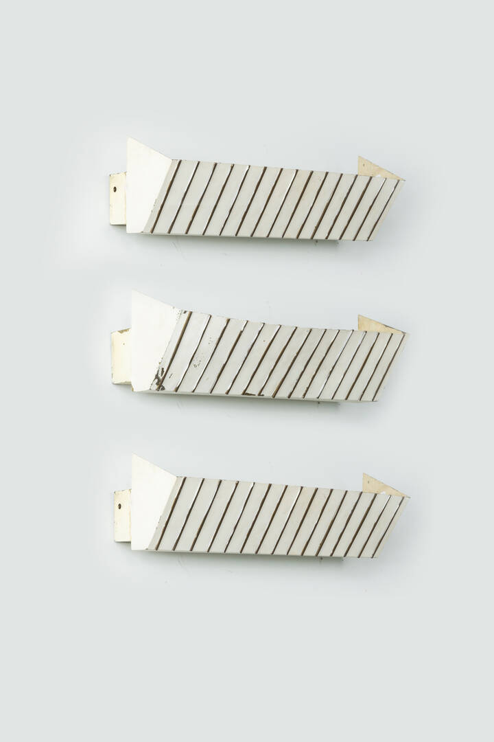 Tre lampade a parete in ottone verniciato.