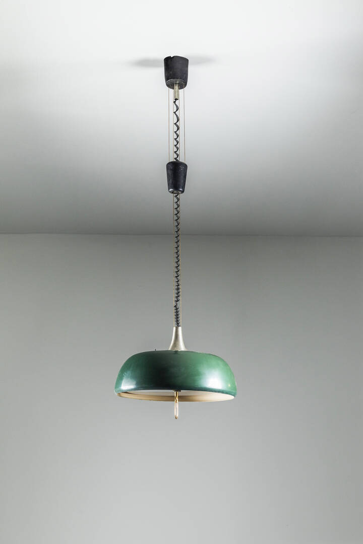 Lampadario con movimento saliscendi in metallo verniciato e ottone.