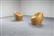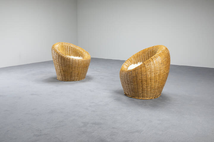 Coppia di poltrone con struttura in vimini intrecciato. Anni '70