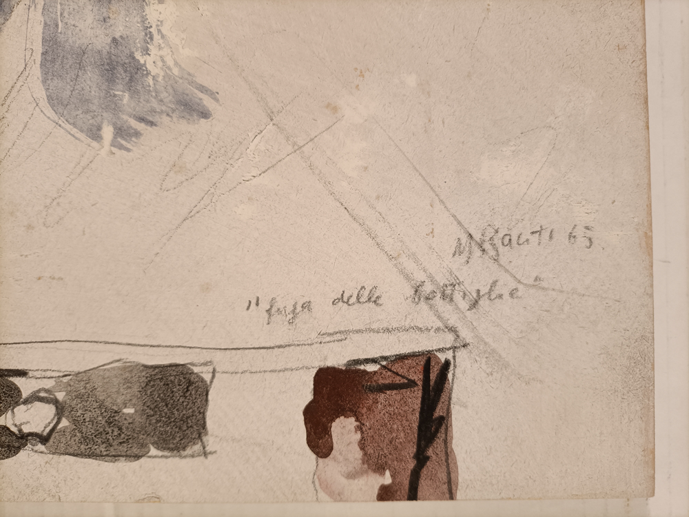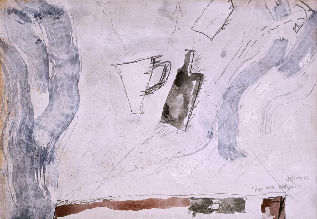 RACITI MARIO Milano (Mi) 1934 Fuga delle bottiglie 1965 Tecnica mista su...