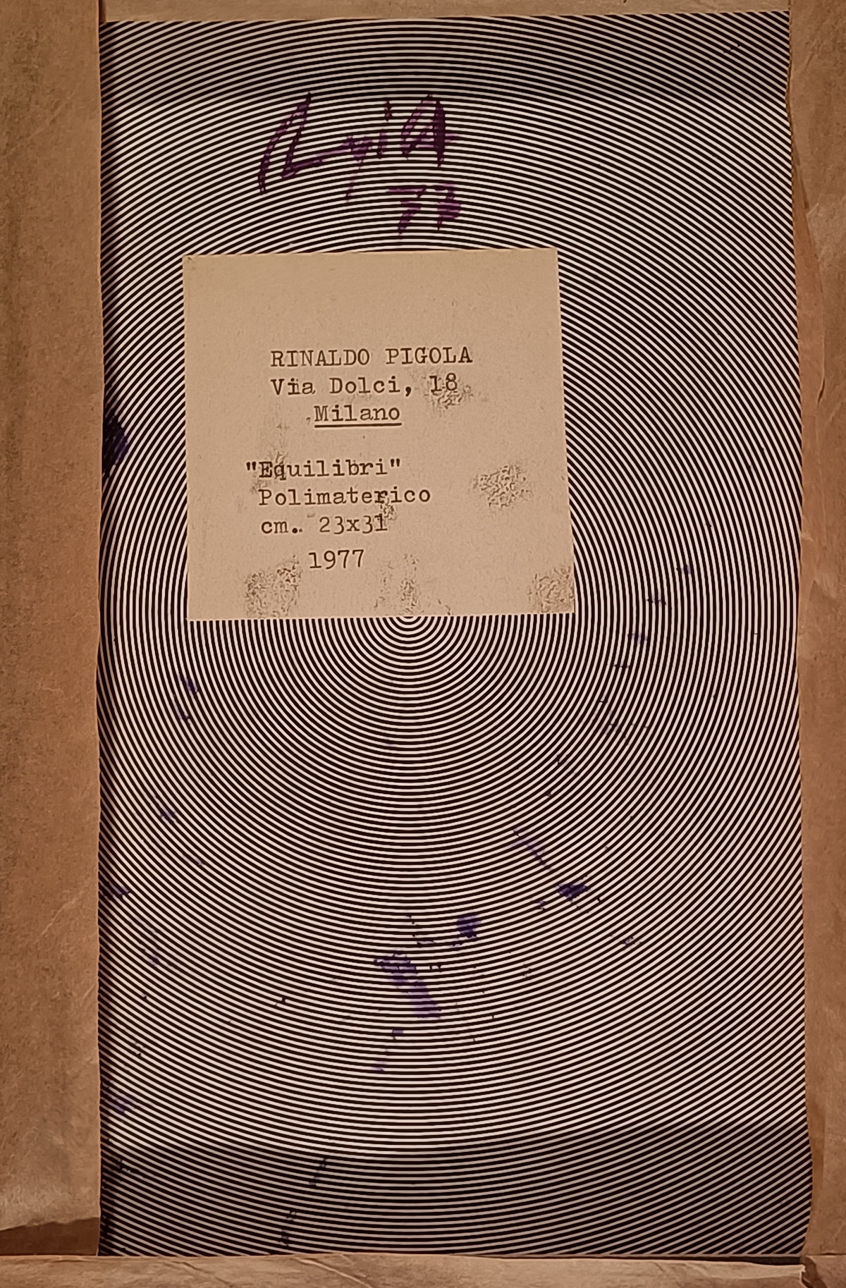 PIGOLA RINALDO Romano di Lombardia (Bg) 1918 Equilibri 1977 Polimaterico...