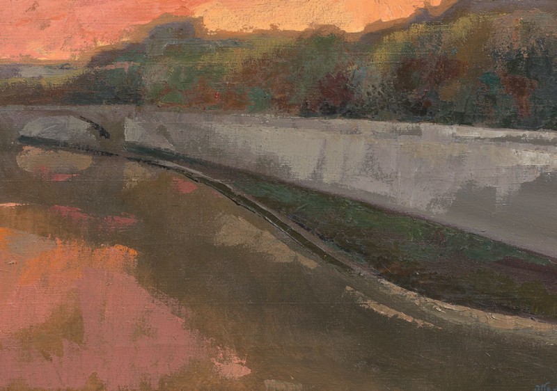 Ugo Attardi Sori (Ge) 1923 - Roma 2006 Ponte di Roma Olio su tela, cm. 35x50 Firma in basso a destra e al verso: Attardi.