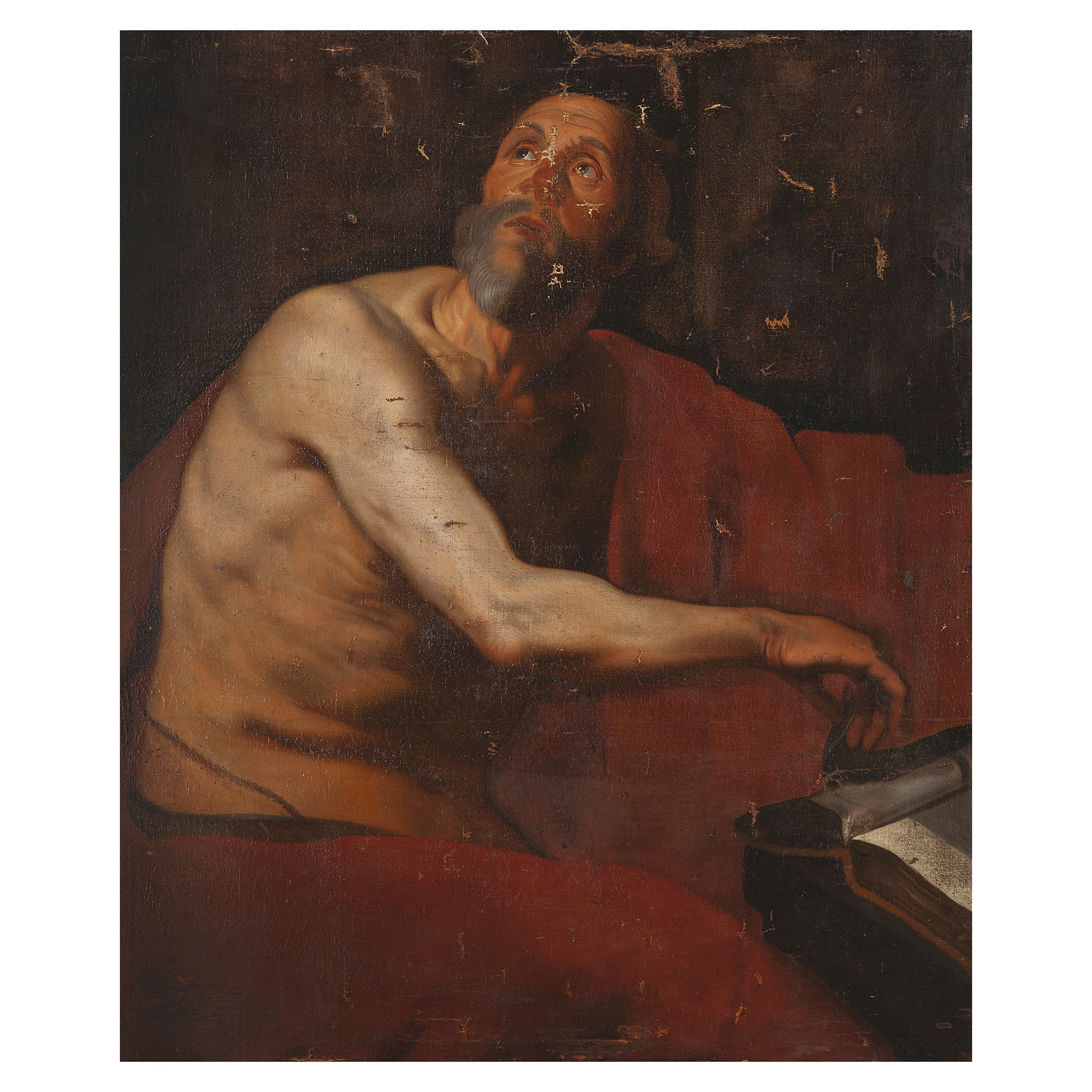 Matthias Stomer (Amersfoort, 1600 – Sicilia, dopo il 1650) San Gerolamo Il pittore ebbe la sua prima formazione artistica presso il maestro Gerrit van Honthorst, membro della scuola di Utrecht insieme ai pittori olandesi più noti del tempo: Hendrick ter Brugghen, Dirck van Baburen e Abraham Bloemaert. Essi si distinsero per la capacità con cui assimilarono la lezione caravaggesca durante i loro viaggi in Italia; è logico desumere che la formazione ricevuta abbia influenzato la prima produzione dello Stomer. Egli intraprese il suo viaggio in Italia nel 1630: si recherà prima a Roma, dove rimarrà fino al 1633; successivamente la sua presenza è documentata a Napoli fino al 1637. Questo periodo risulta particolarmente florido per l’artista, che sì avvicinerà molto alla produzione dello Spagnoletto e al vigore espressivo della sua pennellata. L’ultimo decennio della sua vita è però trascorso in Sicilia, dove resterà fino alla morte; qui la sua tavolozza si fa più calda, ma i contrasti luministici raggiungono il loro apice, abbagliando l’osservatore nelle grandi pale realizzate per le chiese di tutta la regione.Il dipinto che ci troviamo ad osservare è il frutto di un attento studio dell’anatomia, tipica della tradizione fiamminga, debitrice però nei contrasti chiaroscurali e nel taglio composizione, del caravaggismo romano.San Gerolamo è raffigurato secondo la sua più tradizionale forma: anziano e a torso nudo, impegnato nell’atto di meditare sulle Scritture. Il fondale scuro fa esaltare il torso nudo del santo, in tensione e rivolto all’indietro, ma la luce non investe il corpo, bensì lo accarezza, esaltandone il movimento.Bibl.: A. Zalapì in, Dipinti caravaggheschi, 2000, pp. 48-79, 83-88; B. Nicolson, Caravaggism in Europe, Turin 1990, vol. III. Olio su tela, cm 108x91