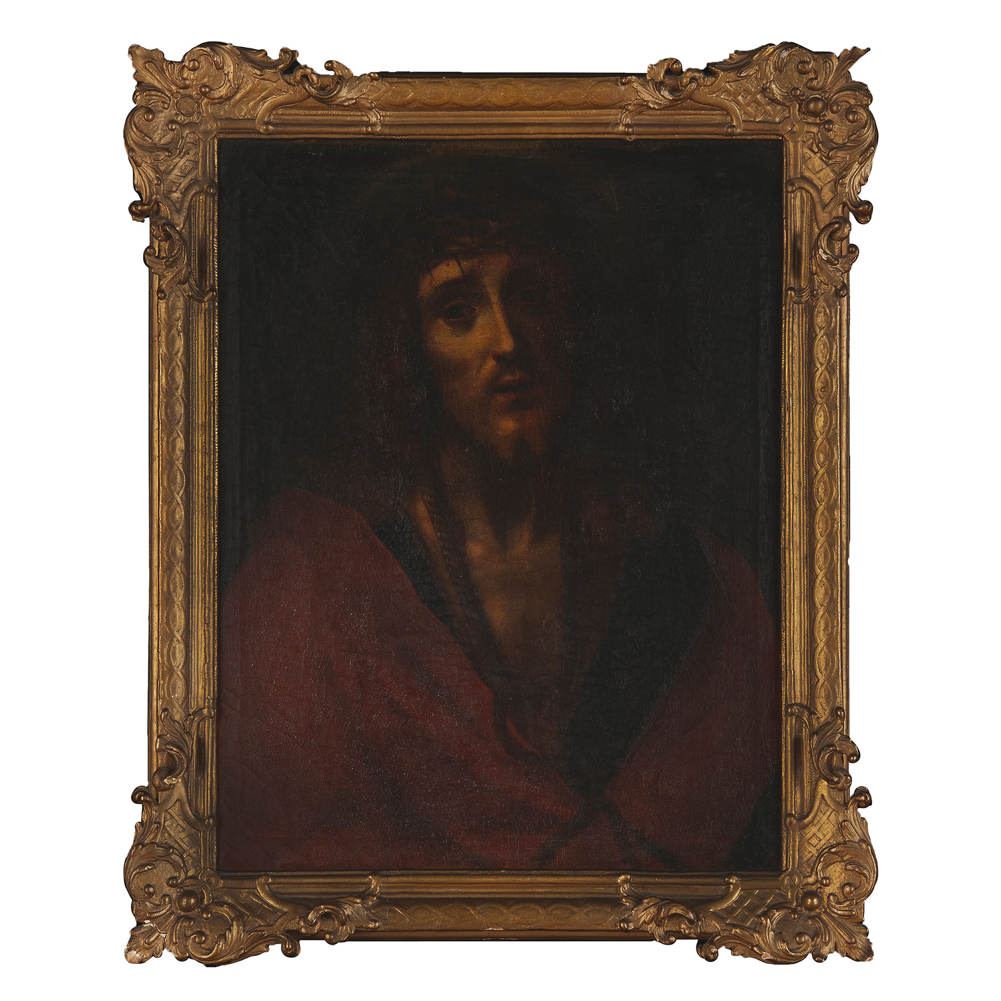 Carlo Dolci (Firenze, 1616 - Firenze, 1686), Ecce Homo Il biografo principe del Seicento fiorentino, Filippo Baldinucci, fu allievo del pittore Carlo Dolci; a lui dobbiamo molto di ciò che sappiamo oggi di questo straordinario ritrattista fiorentino. Dopo una prima formazione presso Jacopo Vignali, egli legò indissolubilmente la sua produzione al tema del sacro e alla ritrattistica, concependo le sue doti come un vero e proprio “dono di Dio”. Introverso e devoto, lascerà Firenze solo in un’occasione, nel 1672, quando l’Arciduca Ferdinando Carlo d’Asburgo lo invitò ad Innsbruck per ritrarre sua figlia Carla Felicita e Anna de’ Medici, futura moglie dell’imperatore Leopoldo I.La sua mano la si evince, in particolare, nella delicatezza e nitidezza dei volti, tipici della ritrattistica fiorentina e che risentono della lezione correggesca; ciò che osserviamo qui, però, appare piuttosto diverso. Evidenziando la dolcezza dei tratti e l’attenzione all’espressività della raffigurazione, qui il Cristo appare come caricato di un forte patetismo, evidenziato dai colori scuri e dal taglio molto ravvicinato della composizione. A rinsaldare l’attribuzione a questo maestro vi è anche la presenza di un’opera iconograficamente molto simile attribuita al Dolci, oggi all’Alte Pinakothek di Monaco di Baviera Olio su tela, cm est. 73x67, int. 62x48.5