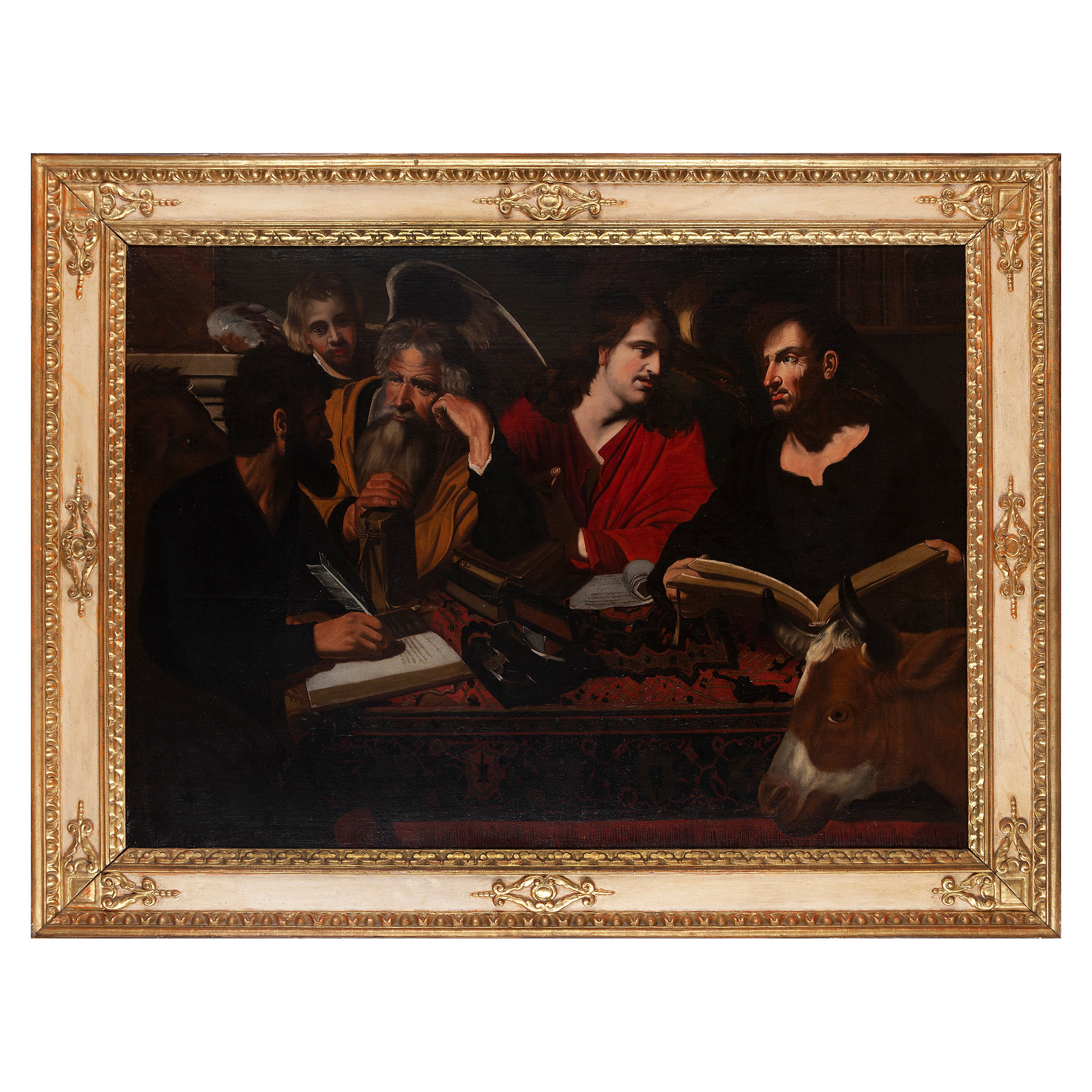 Valentin de Boulogne (Coulommiers 1591 – Roma 1632), I Quattro Evangelisti, inizi del XVII secolo Opera attribuita a Valentin de Boulogne, tratta da un soggetto di Artus Wollfort (Anversa 1581 - 1641), ora conservato al Musée de Beaux Art de Bordeaux. Olio su tela, dimensioni ext. 203x154,5, int. 170,5x123 cm.