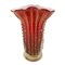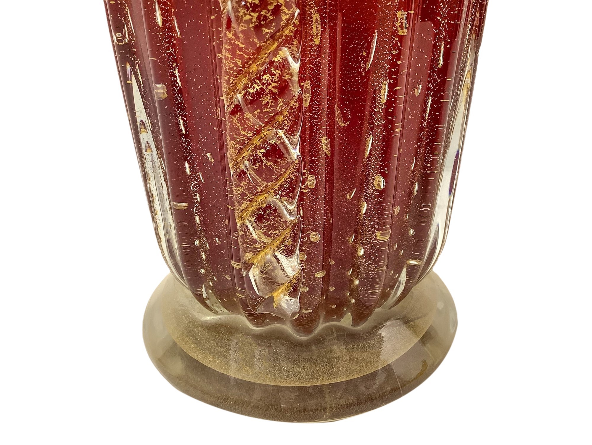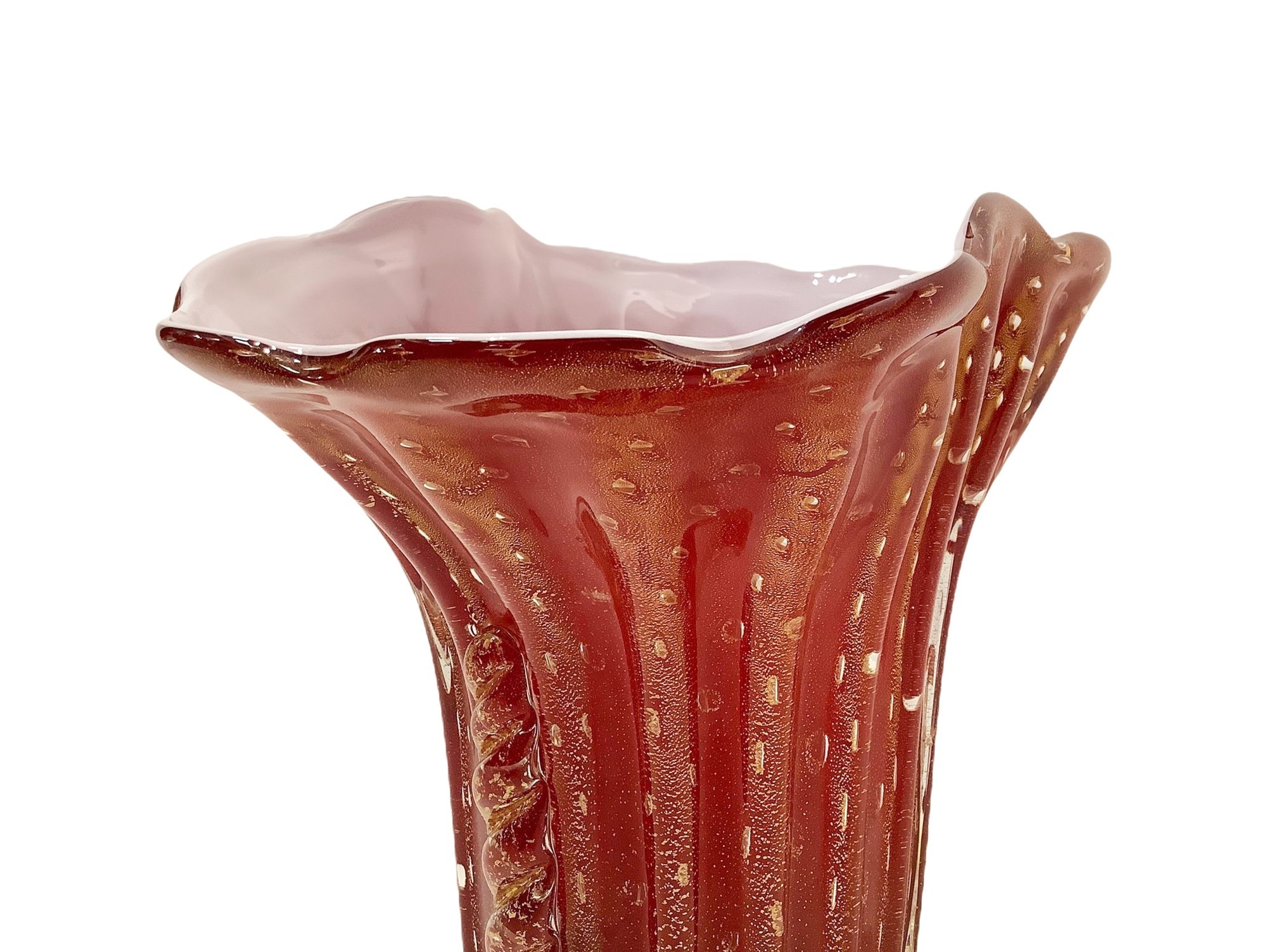 Vaso in vetro di murano, 20° secolo h 36 cm Di colore bordeaux, incamiciato in bianco lattimo con inclusioni d'oro