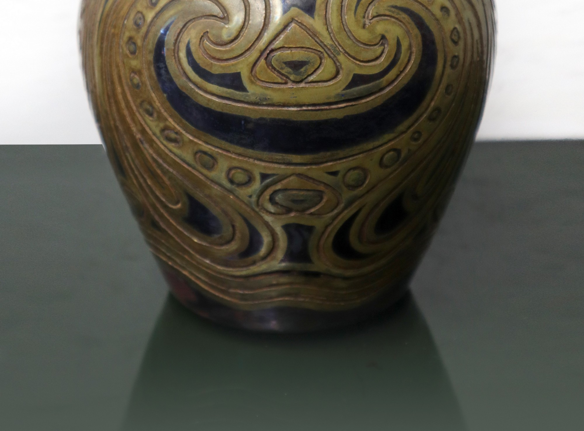 Galileo Chini (1873-1956) - Vaso in terracotta cm 15, diametro bocca cm 9 Di forma balaustro, riportante decoro fitomorfo lungo la superficie. Con dettagli nei toni del blu rifiniti al terzo fuoco. Firmato alla base Chini & Mugello, Made in Italy. Presenti due minime sbeccature al collo.