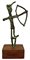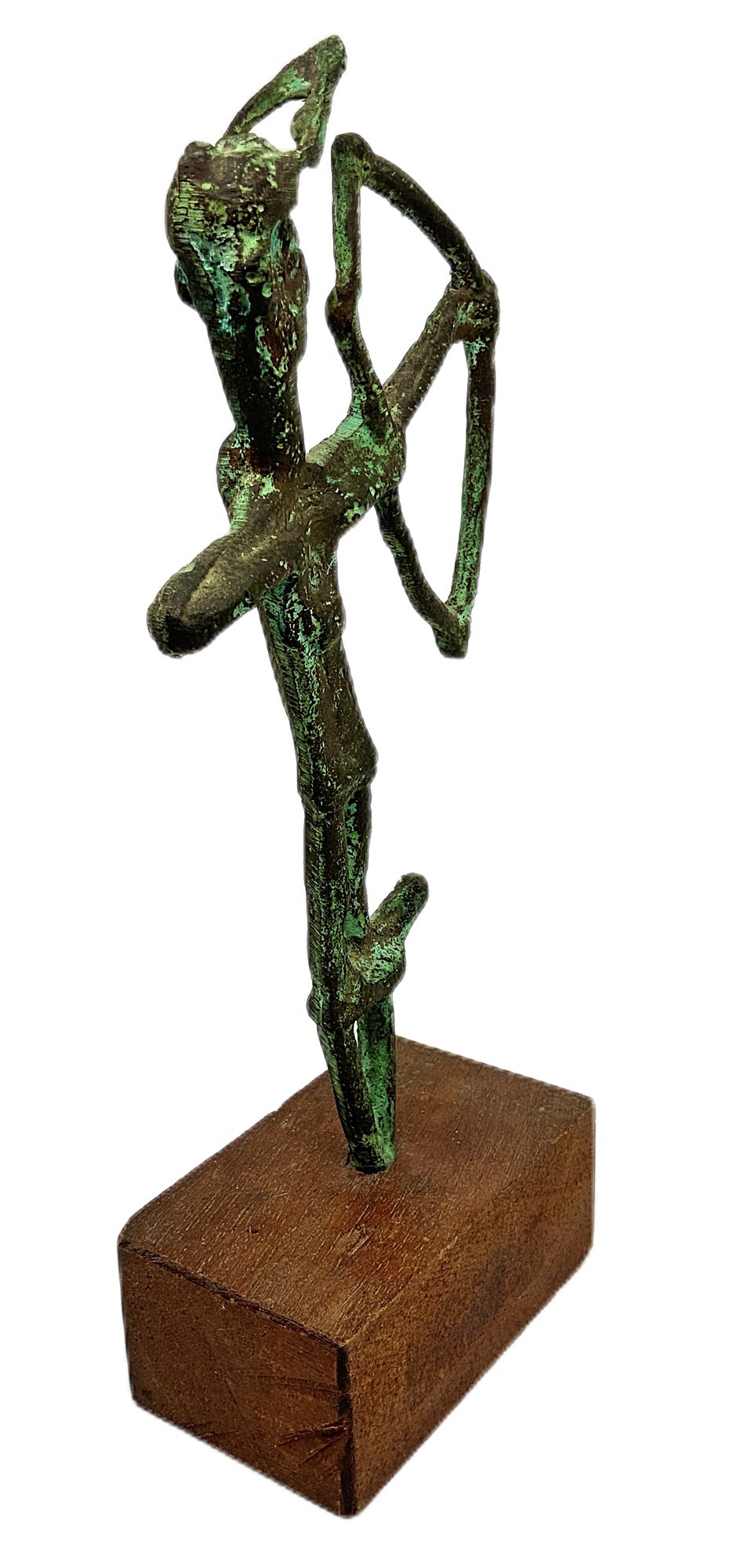 Scultura in bronzo battuto raffigurante guerriero con arco. H cm 25 con base in legno