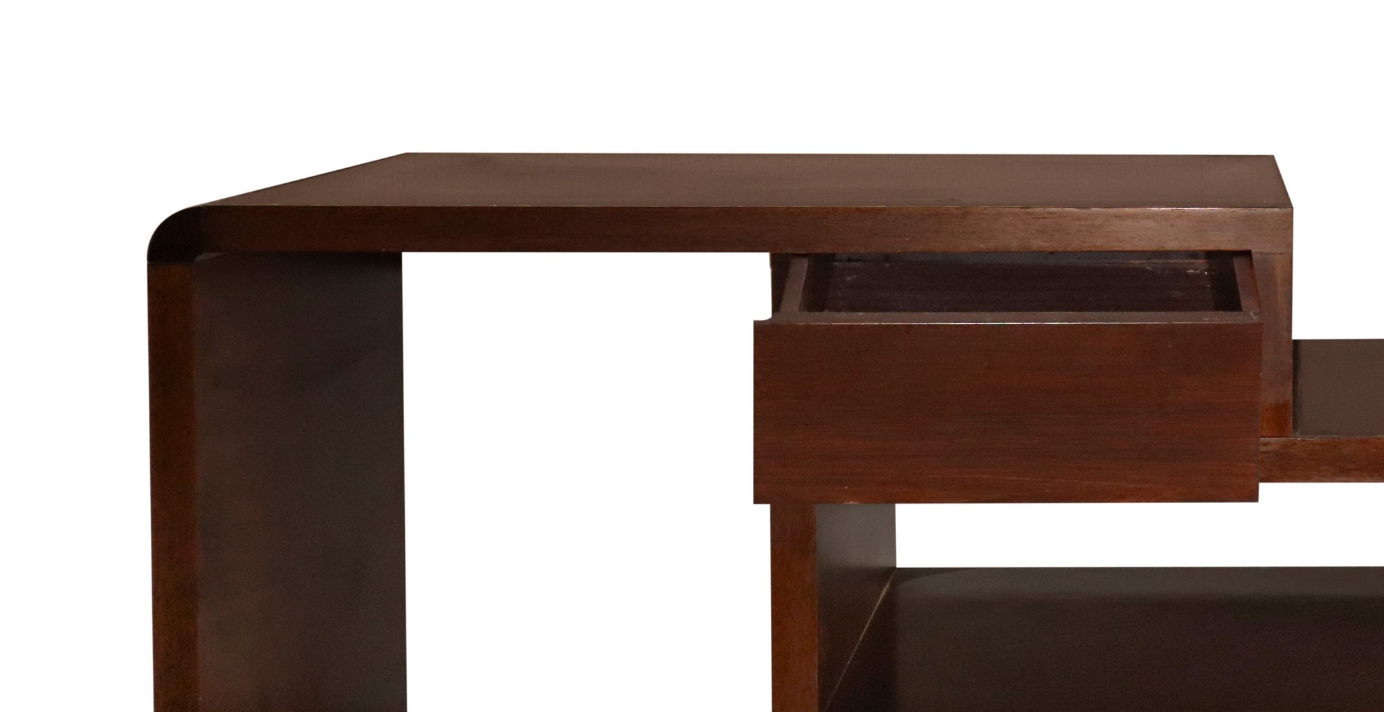 Etagere con struttura modulabile rivestita in mogano h cm 70 x cm 45 Produzione italiana. Con cassetto frontale. Presenti segni di uso.