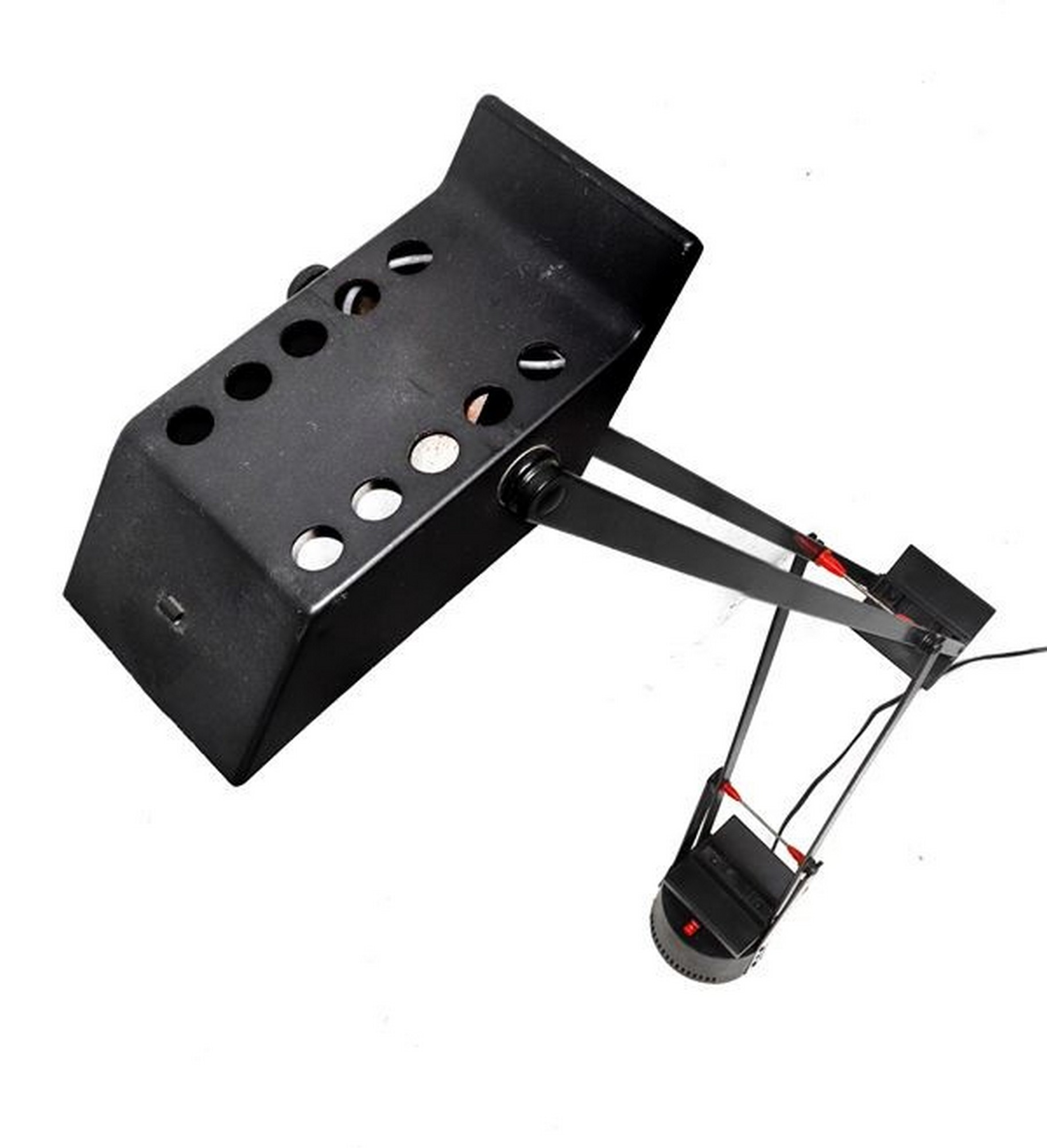 Richard Sapper x Artemetàe - Lampada da tavolo, Mod. Tizio H 1,18 cm, diametro 15 cm Struttura in metallo laccato nero, illuminazione alogena. Presenti evidenti screpolature sulla parte basculante inferiore.