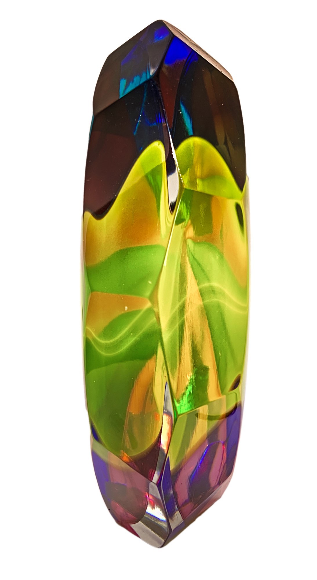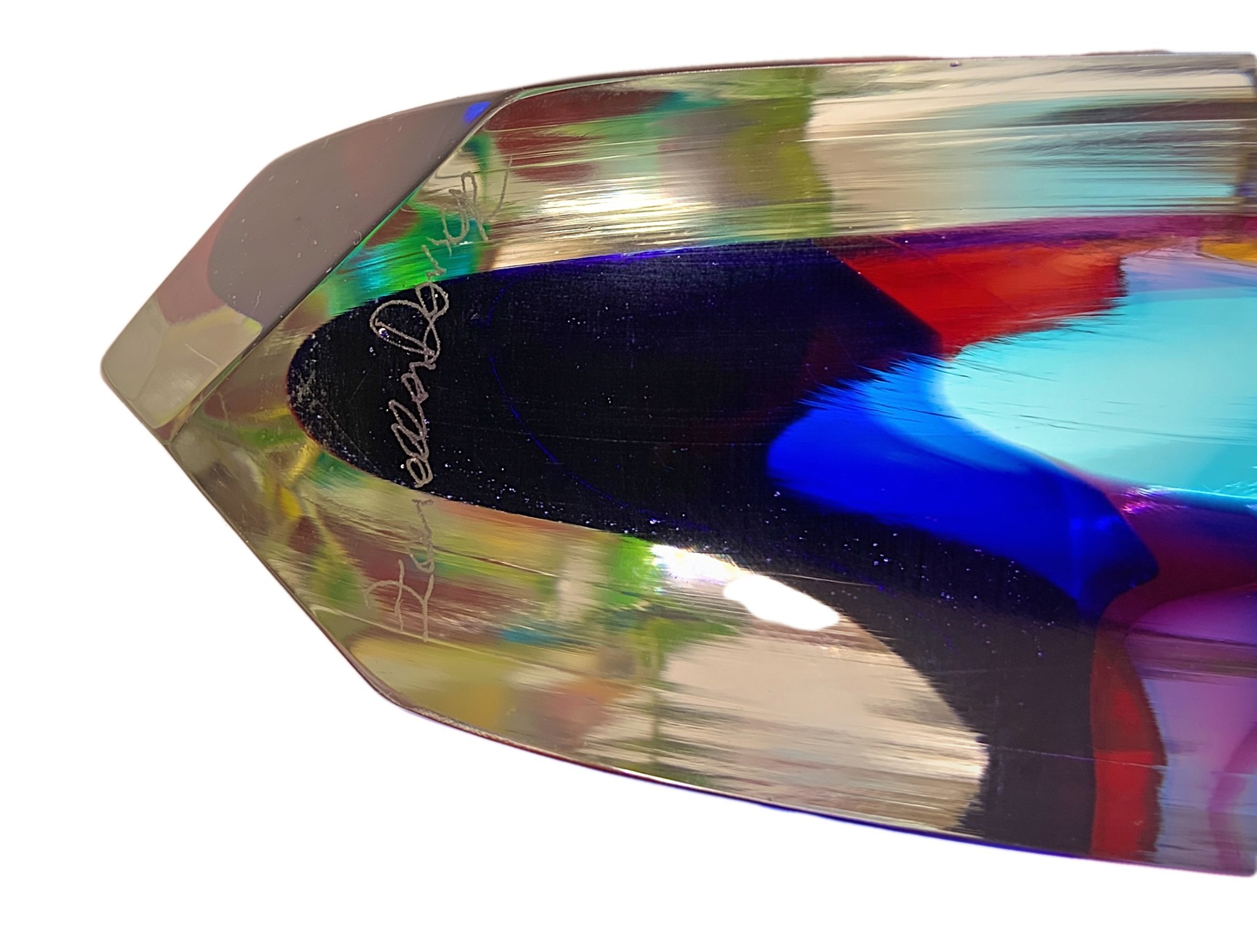 Danilo Zanella - Scultura in vetro pesante di forma circolare con inclusioni di pasta vitrea policroma. H cm 22 x26 Superfice riportante molature lucide.