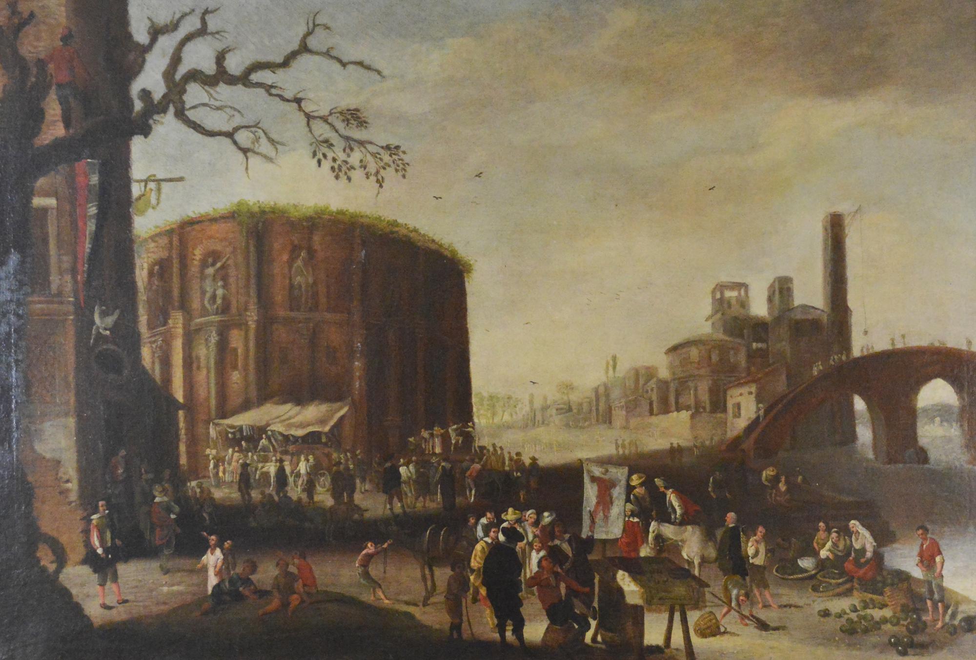 Scuola Italiana della fine del XVII secolo CAPRICCIO olio su tela, cm 81x120