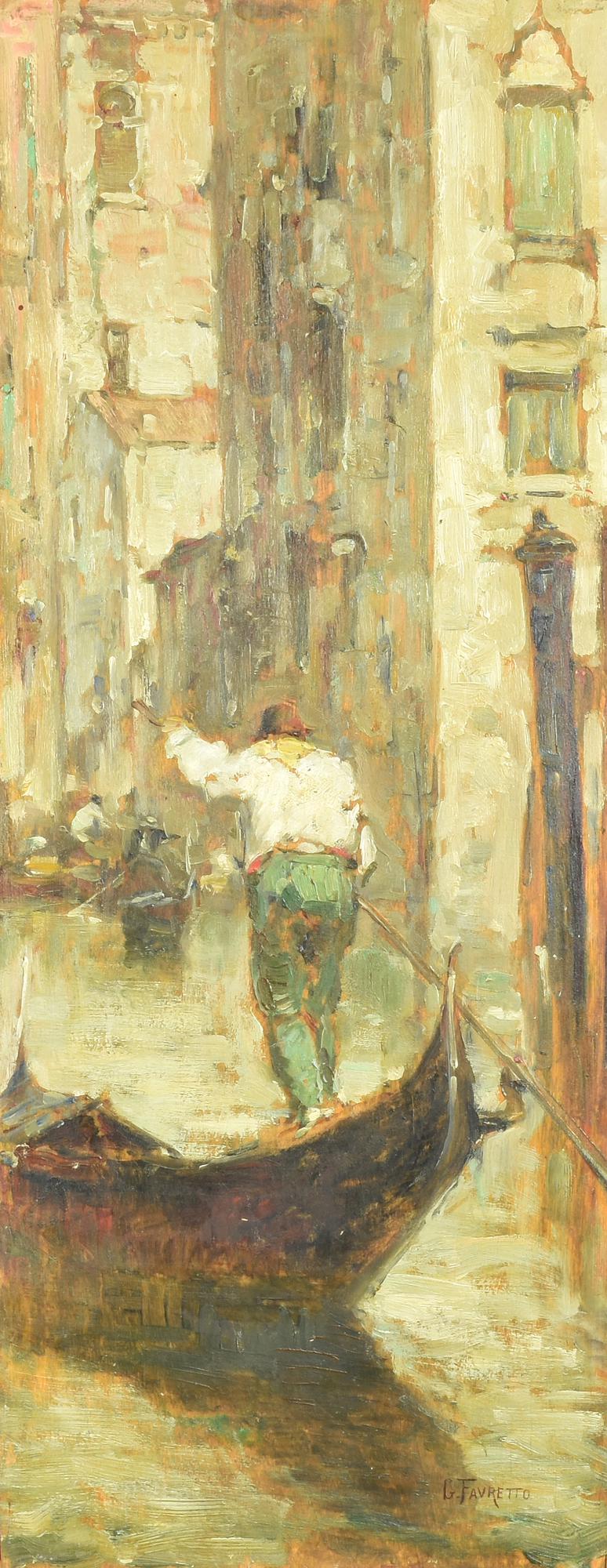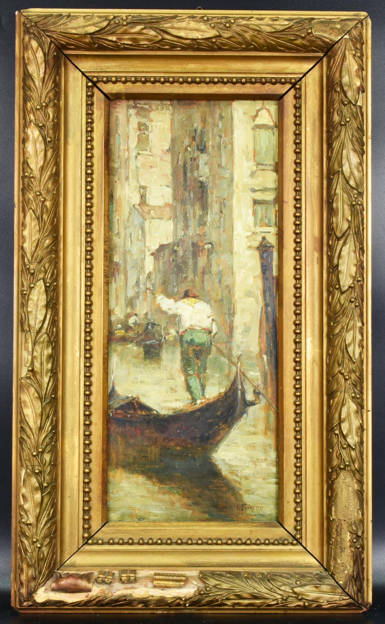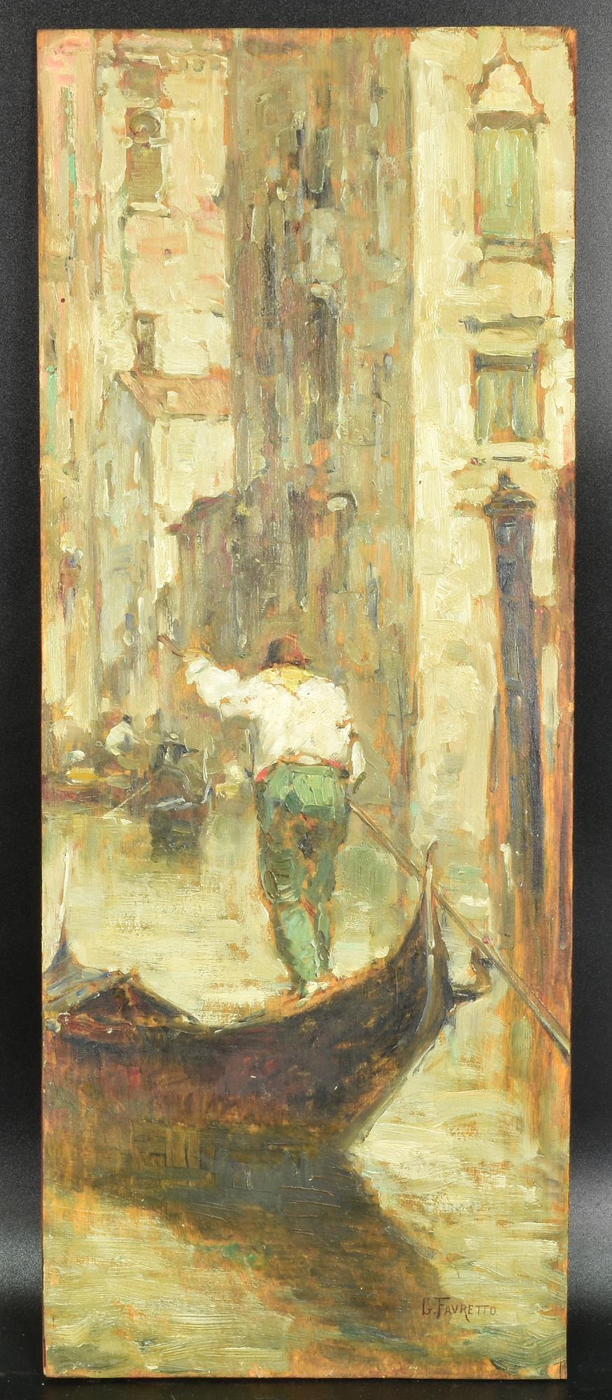 Giacomo Favretto GONDOLIERE olio su tavola, cm 49x19 firma sul retro:...