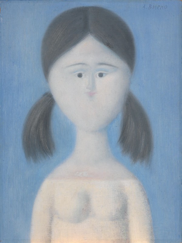 Antonio Bueno Berlino 1918 - Fiesole (Fi) 1984 Figura Olio su faesite, cm. 40x30 Firma in alto a destra: A. Bueno. Al verso scritta e firma: 181 / 3.67 / Bruno Giraldi.