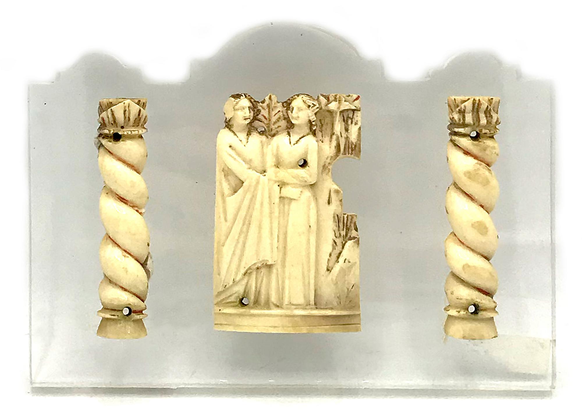 raffiguranti una coppia di figure femminili e due colonne tortili