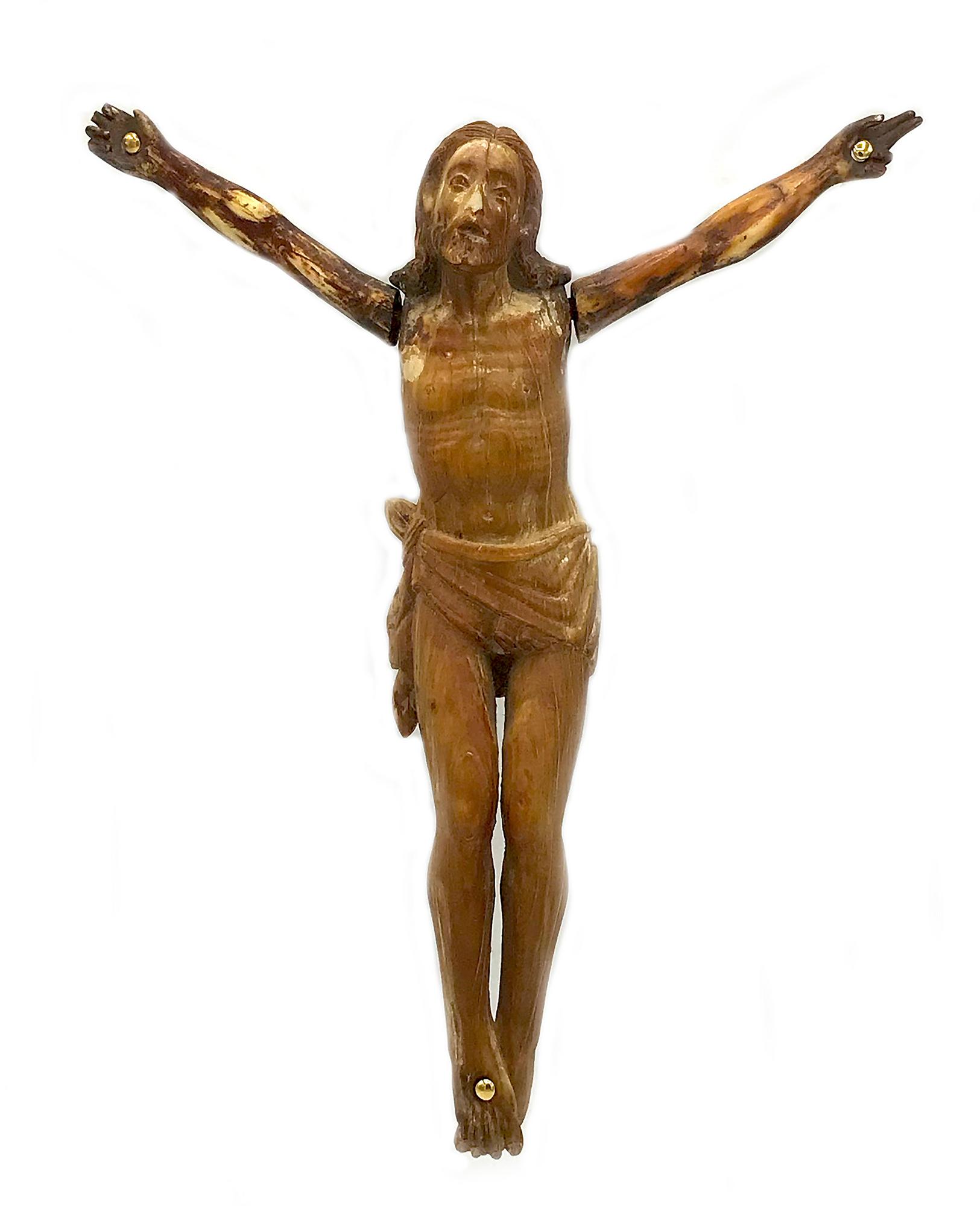 Scuola Italiana del XVI CROCIFISSO avorio, cm 19x16x2,5 fissato su supporto...