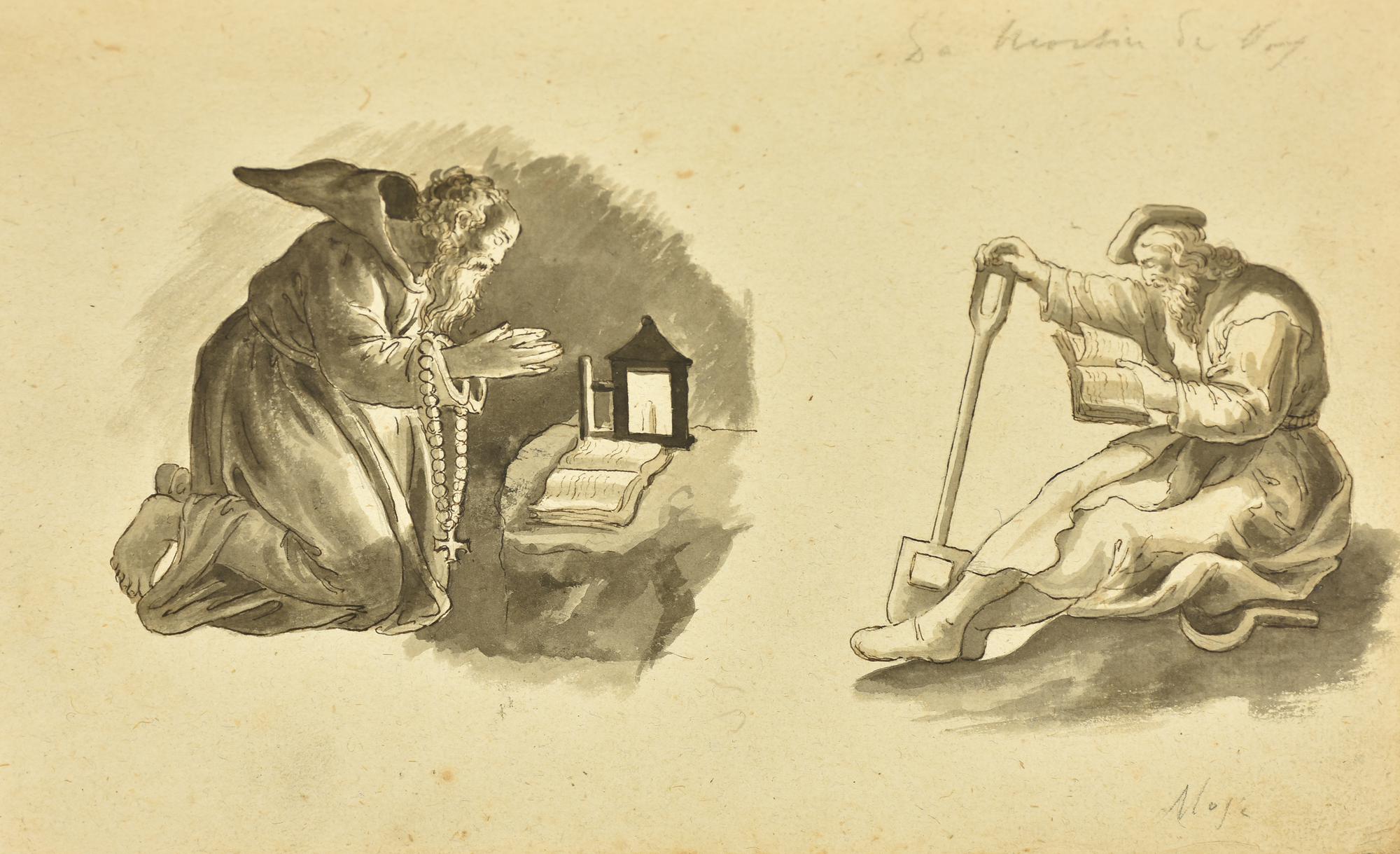 Lotto 138 | Ignoto UOMINI IN PREGHIERA china acquarellata su carta, cm 19x28 firma e...