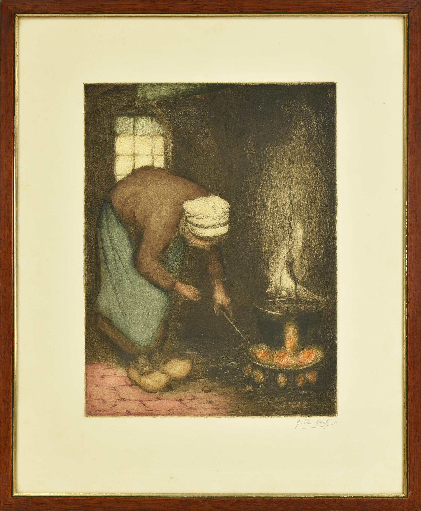 G. Van Hogl DONNA CHE CUCINA acquaforte su carta, battuta cm 38x28, su foglio...