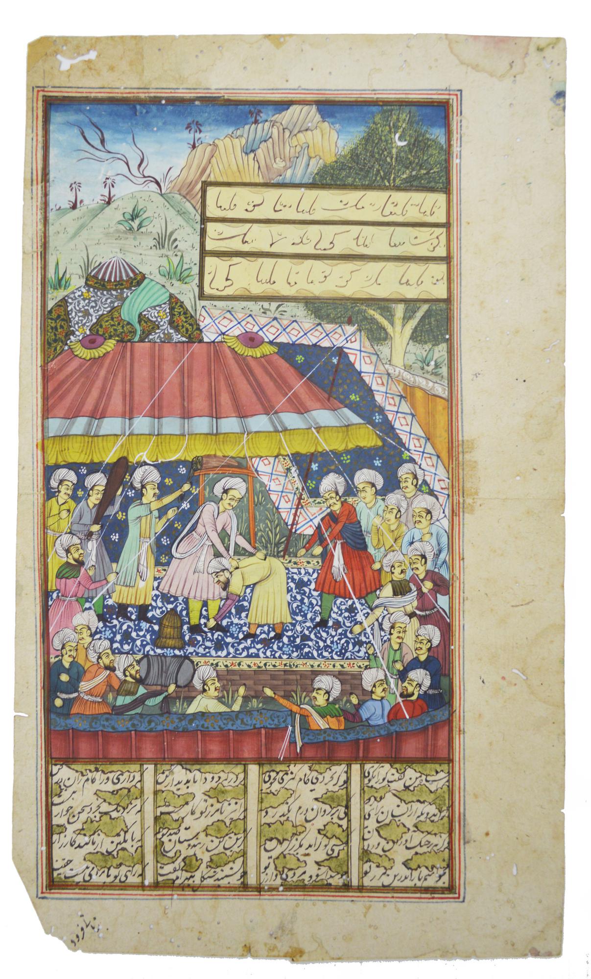 CINQUE MINIATURE PERSIANE china su carta, cm 31x19 e una cm 24x17,5 databili...