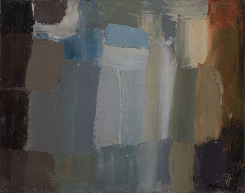 Alfredo Chighine Milano 1914 - Pisa 1974 Composizione, 1959 Olio su tela, cm. 75x96,2 Firma e data in basso a destra: Chighine 1959; titolo e firma al verso sulla tela: 6-60 composizione / Chighine.