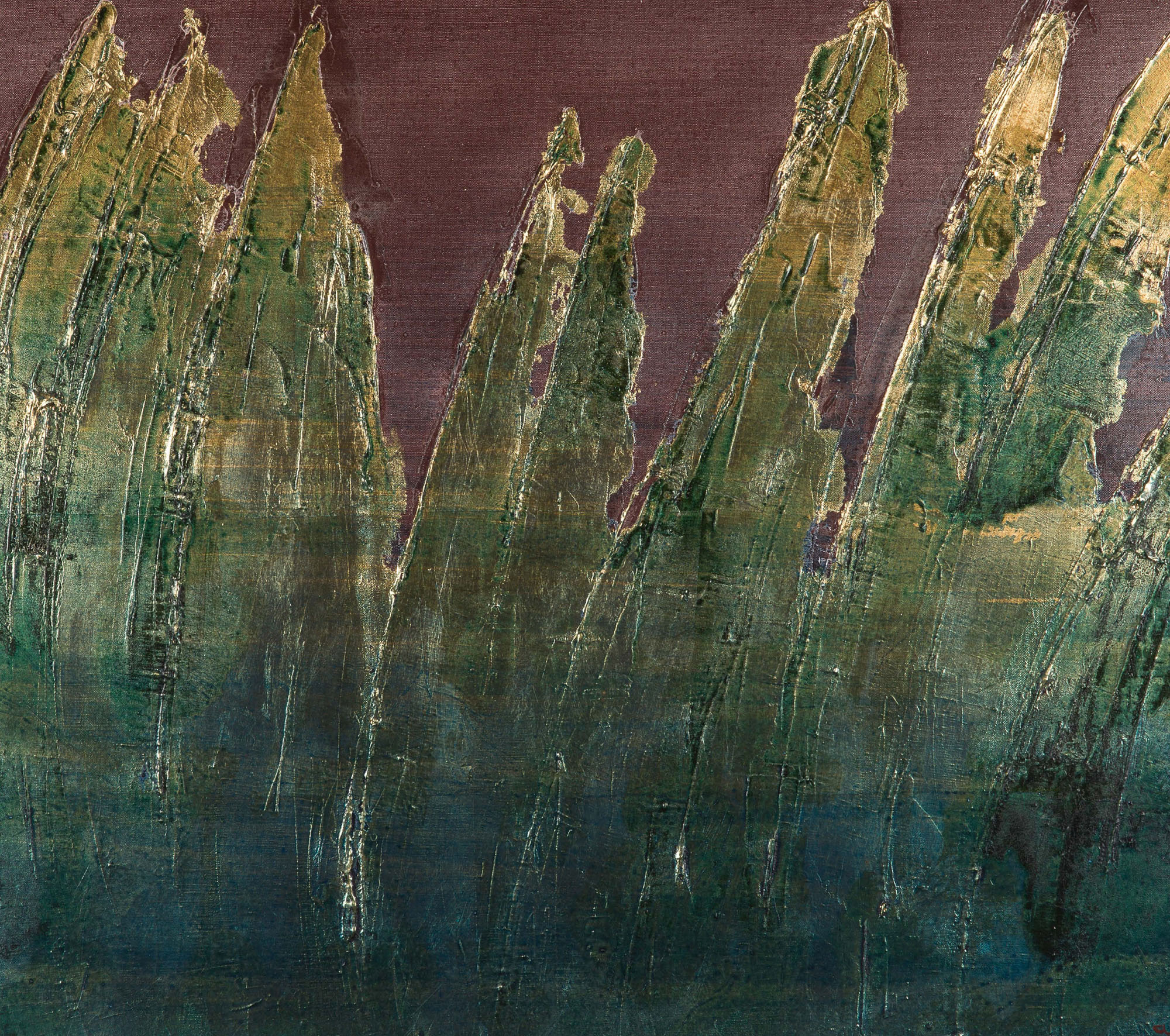Acrylique, modeling paste et feuille de métal, signée et datée en bas à droite, contresignée, titrée et datée au dos