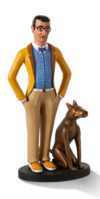 Quatre personnages en résine, numérotés 52/99, l'un signé en partie inférieure