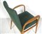 Poltroncina degli anni 1960. Arm chair of 1960s. Legno di faggio e stoffa. Cm 60x87x62. Produzione tedesca.Struttura in legno di faggio rivestita di stoffa verde. Difetti. German work. Shaped beech frame with green fabric. Defects. 1960.