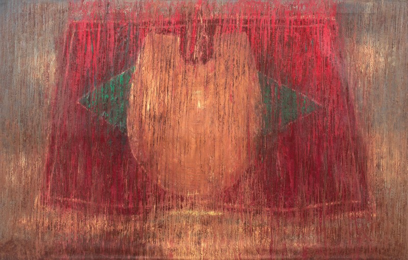 Omar Galliani Montecchio Emilia (Re) 1954 Virgo tagliente, 1987 Olio su tela, cm. 175x275,5 Titolo, firma e data al verso sulla tela: "Virgo tagliente" / Galliani / 1987; firma sul telaio: Galliani (ripetuta quattro volte).