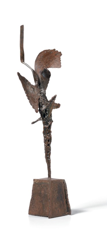 Nino Franchina Palmanova (Ud) 1912 - Roma 1987 Ferro Scultura in ferro, cm. 53 h. Storia: Galleria La Scaletta, San Polo d'Enza; Collezione privata Esposizioni: Da Rodin al cielo di Yoko, Scultura in piccolo del XX secolo, Orosei, Centro culturale L'Ormeggio, 25 maggio - 25 settembre 2002, cat. pp. 84, 85, n. 34, illustrata a colori; Grandi maestri, piccole sculture, da Depero a Beverly Pepper, a cura di Lara Vinca Masini, Pistoia, Palazzo Sozzifanti, 6 aprile - 30 giugno 2013, cat. pp. 308, 309, illustrata a colori.