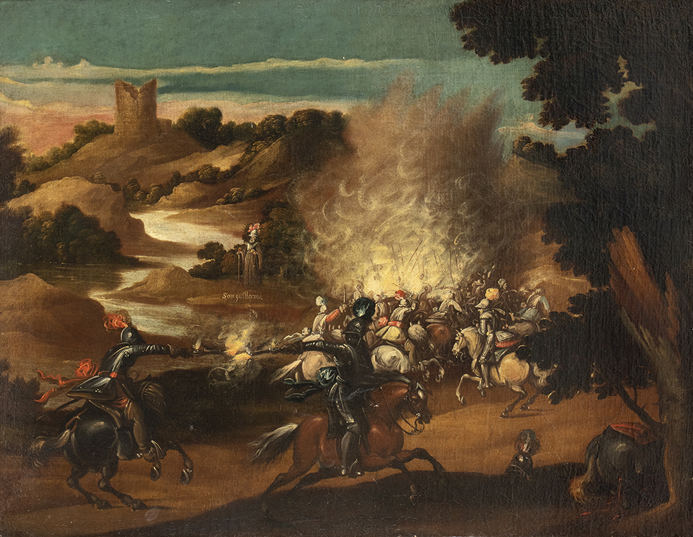 Battaglia tra turchi e cristiani alla presenza di San Gulielmo d'Aquitania