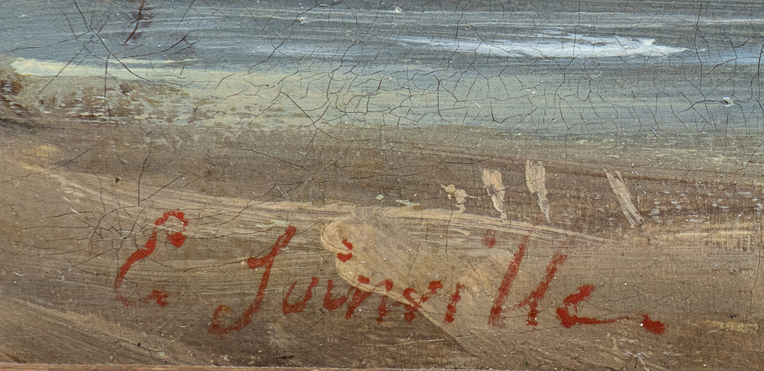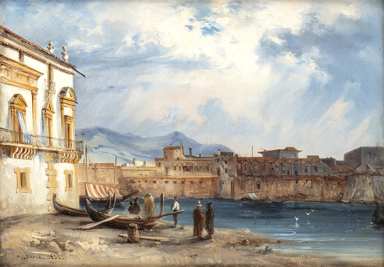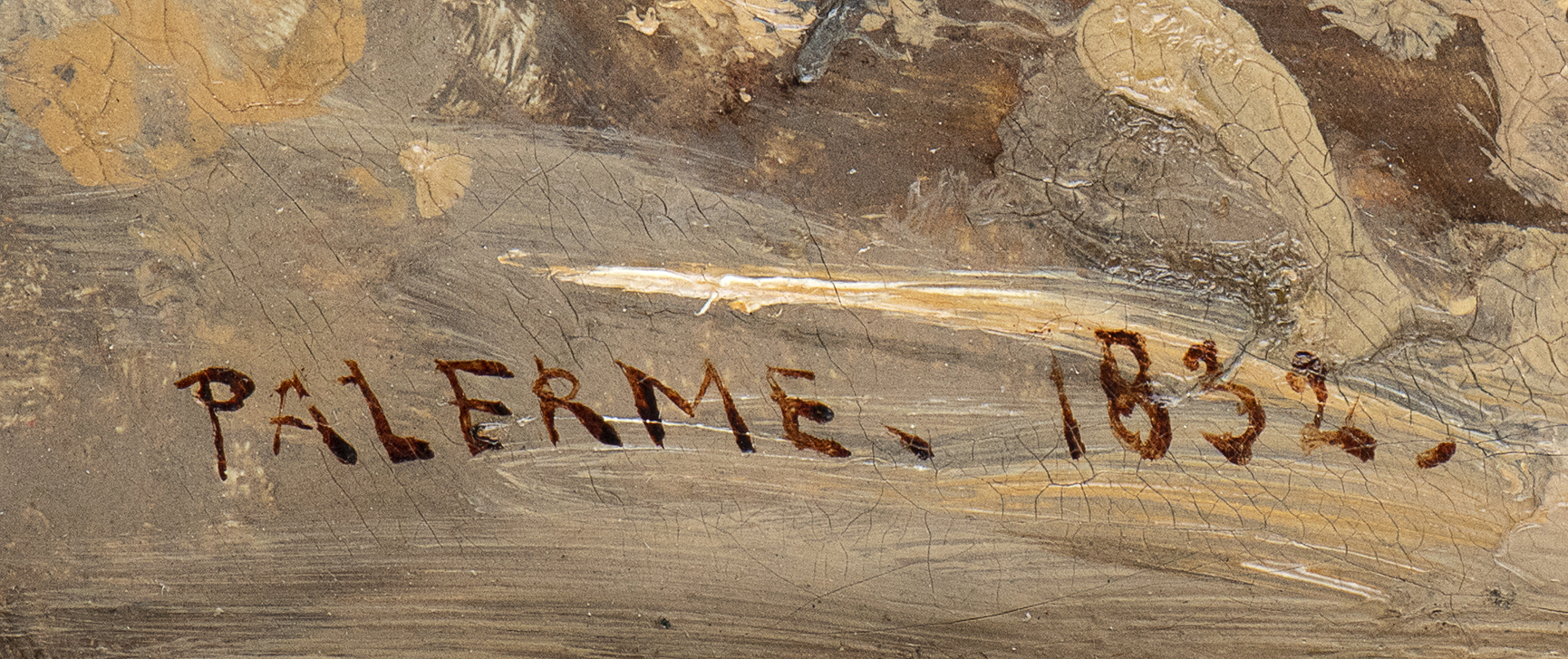 Il dipinto reca firma in basso a destra: "E. JUINVILLE" e luogo e data in basso a sinistra: "PALERME 1832".
