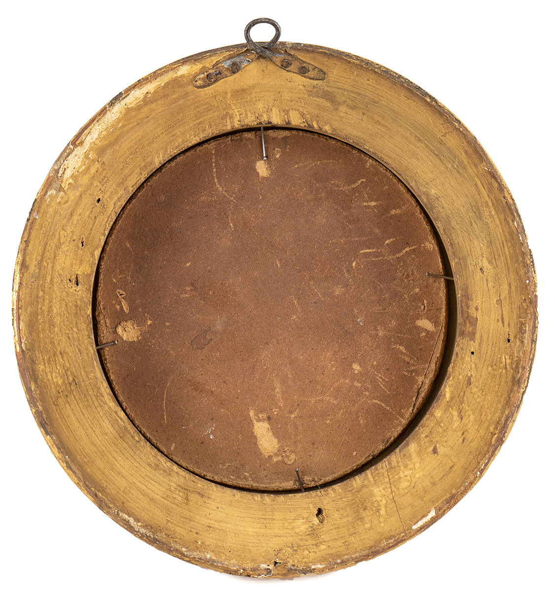 Tela applicata su tavoletta, Ø cm. 14, cad. Con cornici