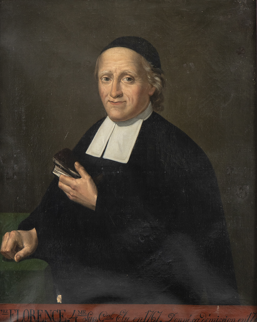 Il dipinto reca lungo il lato inferiore della tela iscrizione a pennello su fondo rosso: "F.RE FLORENCE. 4ME SUP. GAL. ELU EN 1767 DONNÉ CA. DEMISSION EN 17 (…)".
