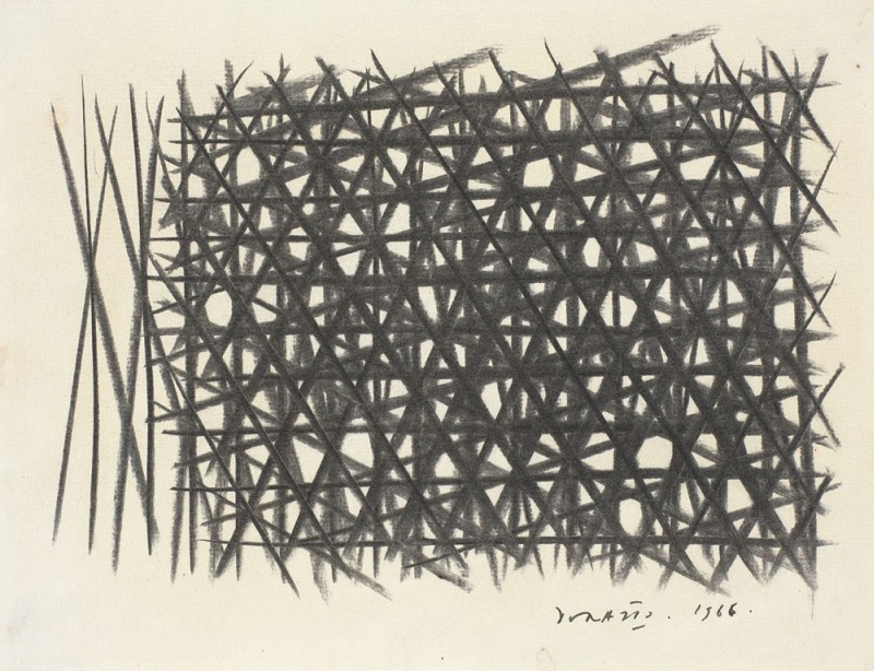 Piero Dorazio Roma 1927 - Todi (Pg) 2005 Reticolo nero, 1966 Matita grassa su carta, cm. 24,8x32,5 Firma e data in basso a destra: Dorazio 1966. Certificato su foto di Claudia Gian Ferrari, Milano, 31 ottobre 2002.