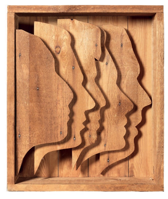 Mario Ceroli Castelfrentano (Ch) 1938 Profili Scultura in legno, cm. 66,5x55x16 Firma in basso a destra: Ceroli. Foto autenticata dall'artista.
